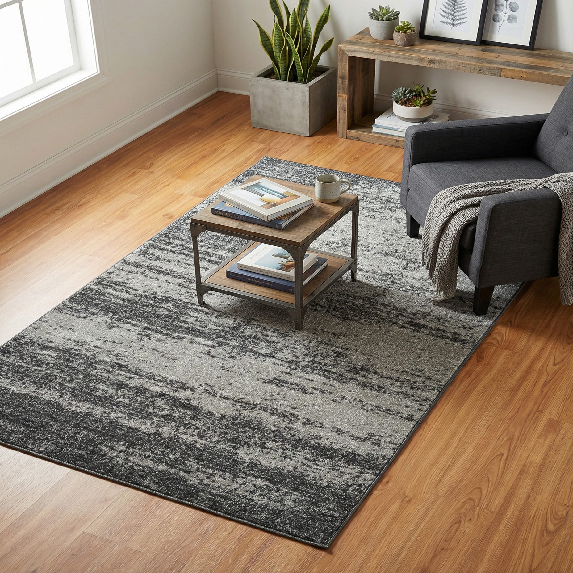 Primary color is Dark Gray. Colors in this rug include: Dark Gray, Gray, Black.