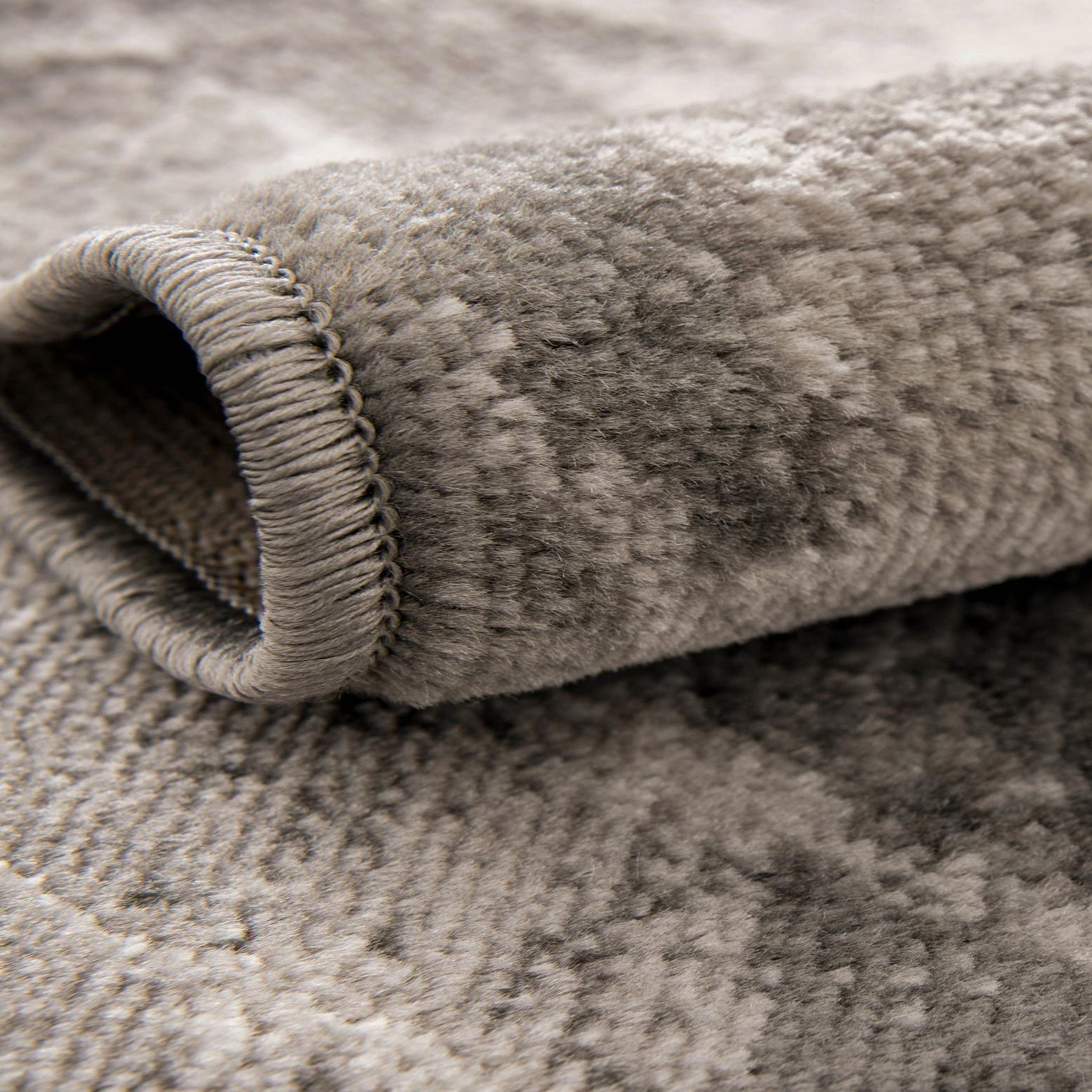 Machine made of 100% polypropylene, the rug has a low, smooth pile that feels firm yet comfortable underfoot and provides an even, tactile surface. Its subtle distressing and tonal palette work well in contemporary or transitional living rooms beneath a coffee table, in neutral bedrooms to add layered texture, or in modern offices and industrial spaces where a restrained pattern can warm minimalist furnishings.