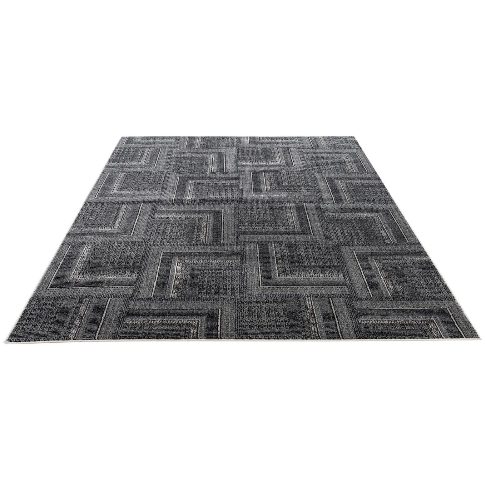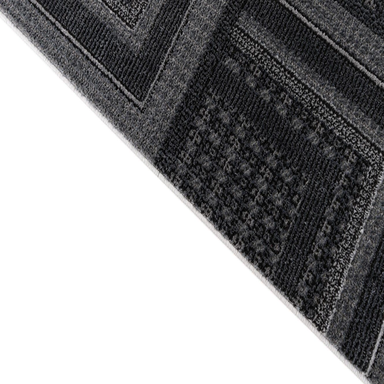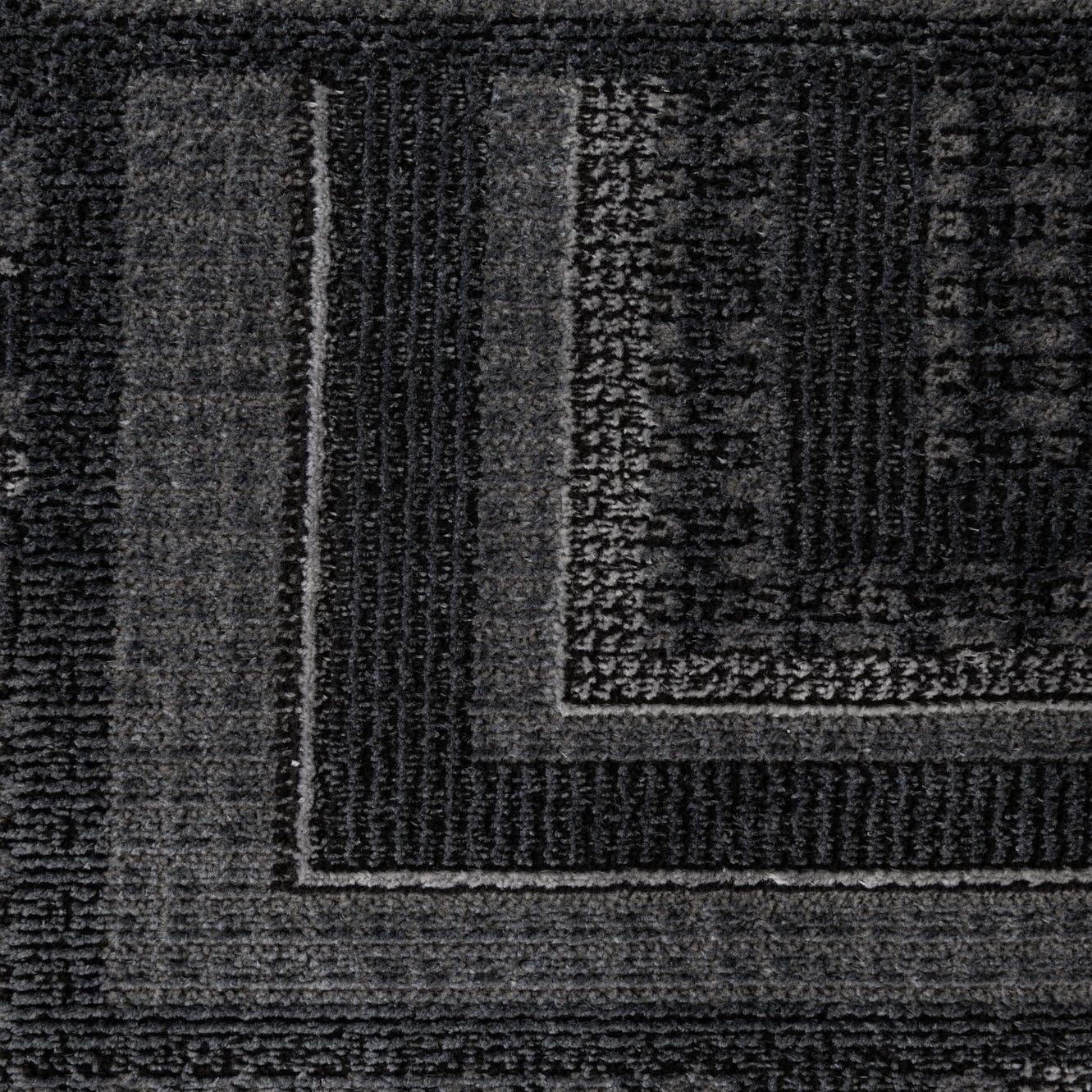 Primary color is Dark Gray. Colors in this rug include: Dark Gray, Black, Ivory.