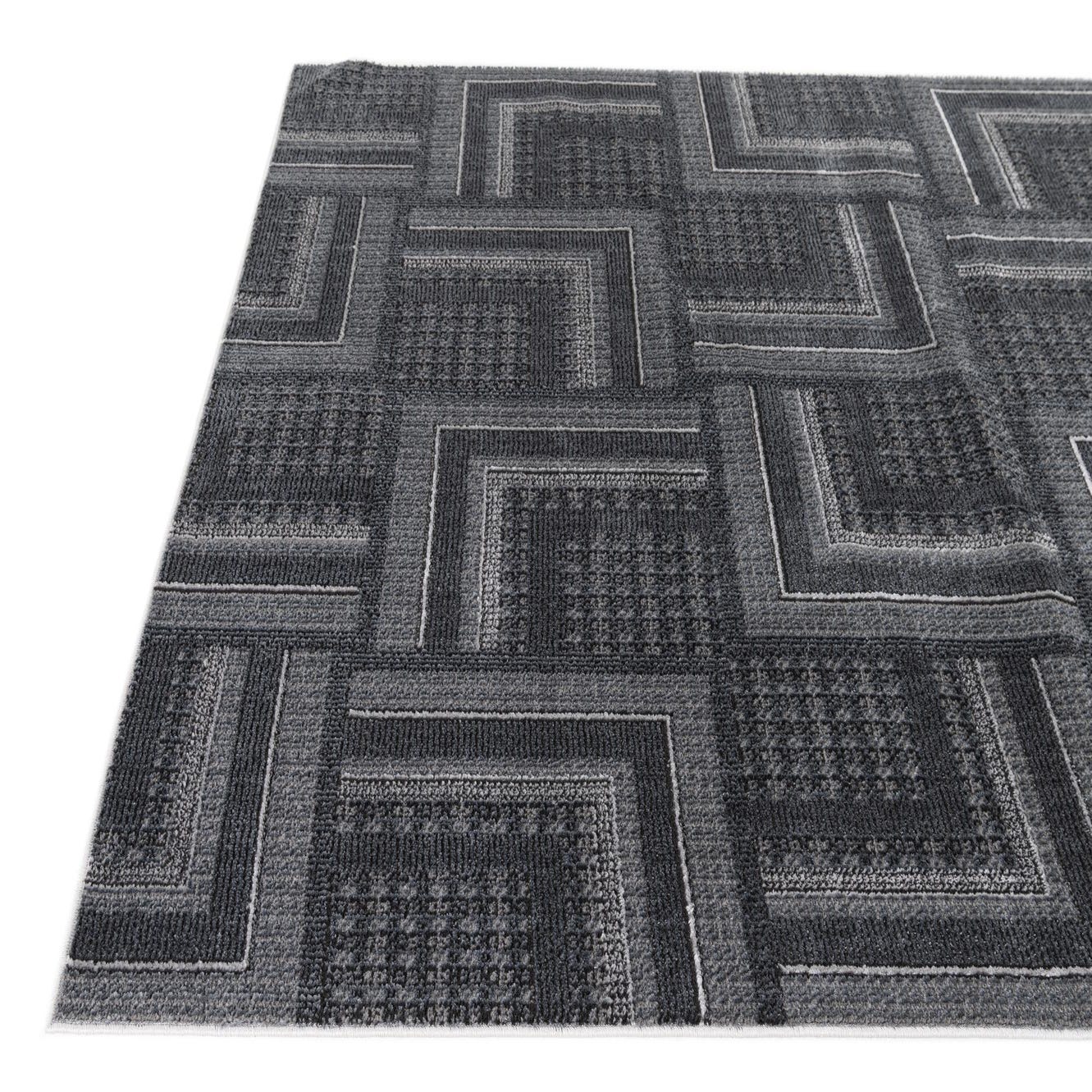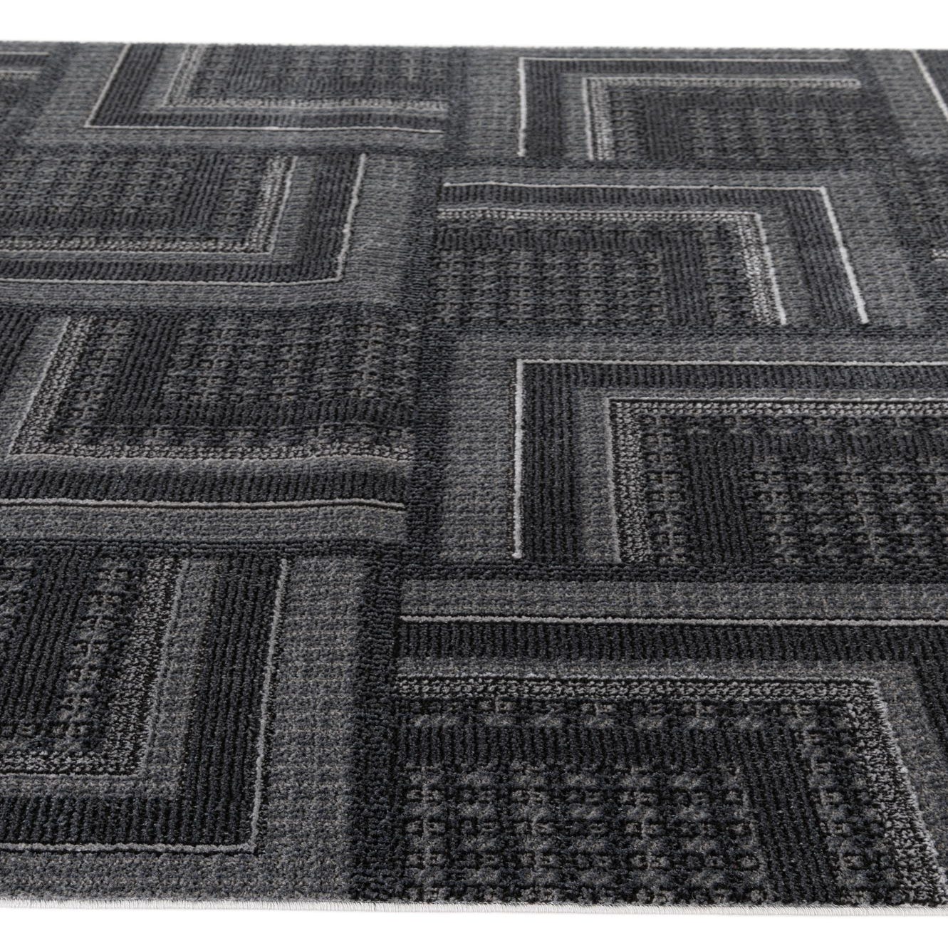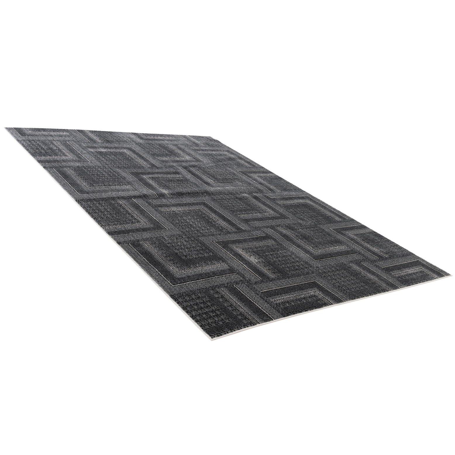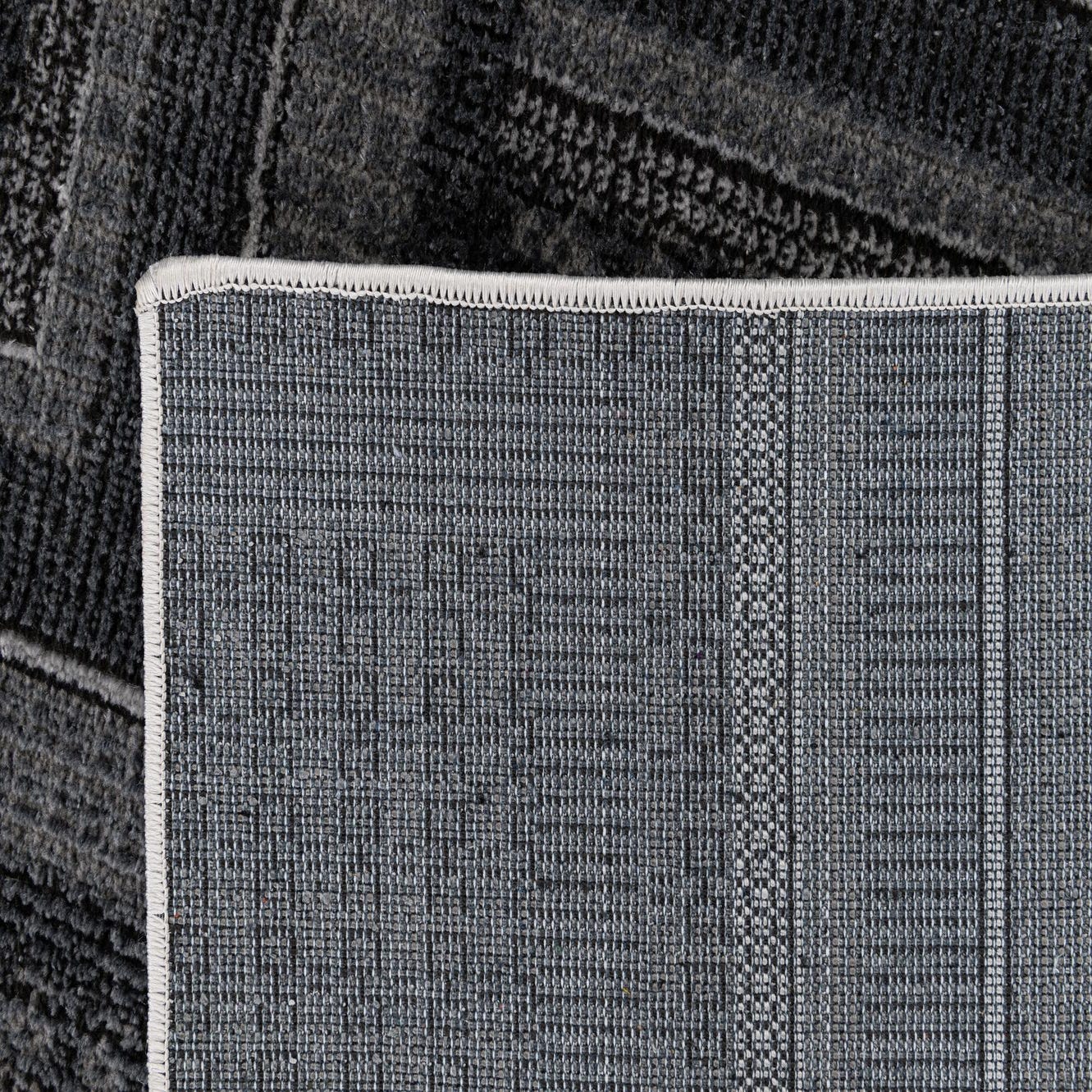 Primary color is Dark Gray. Colors in this rug include: Dark Gray, Black, Ivory.