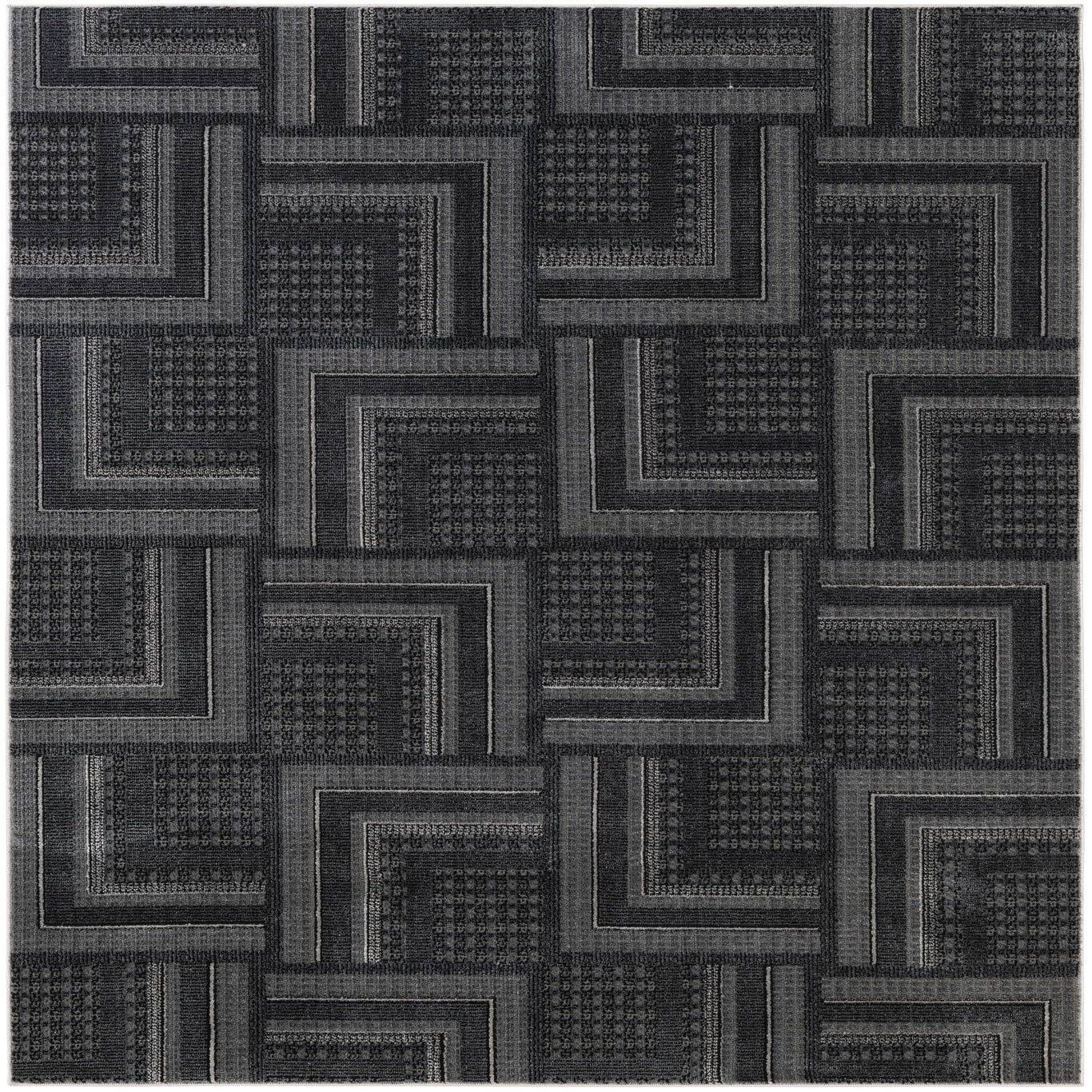 Primary color is Dark Gray. Colors in this rug include: Dark Gray, Black, Ivory.