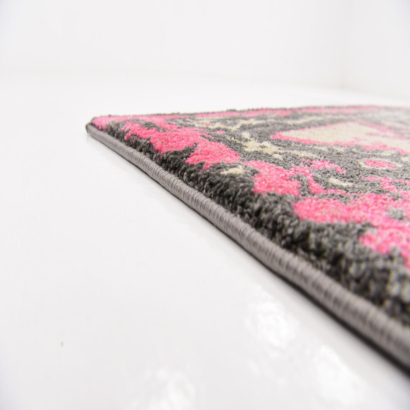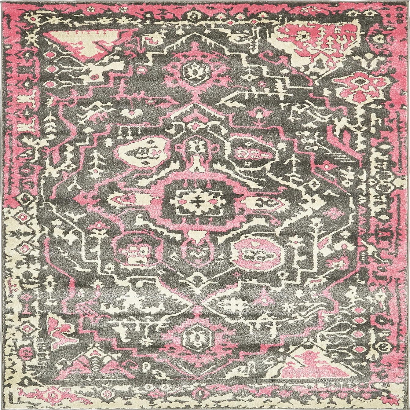 Primary color is Dark Gray. Colors in this rug include: Dark Gray, Cream, Pink.