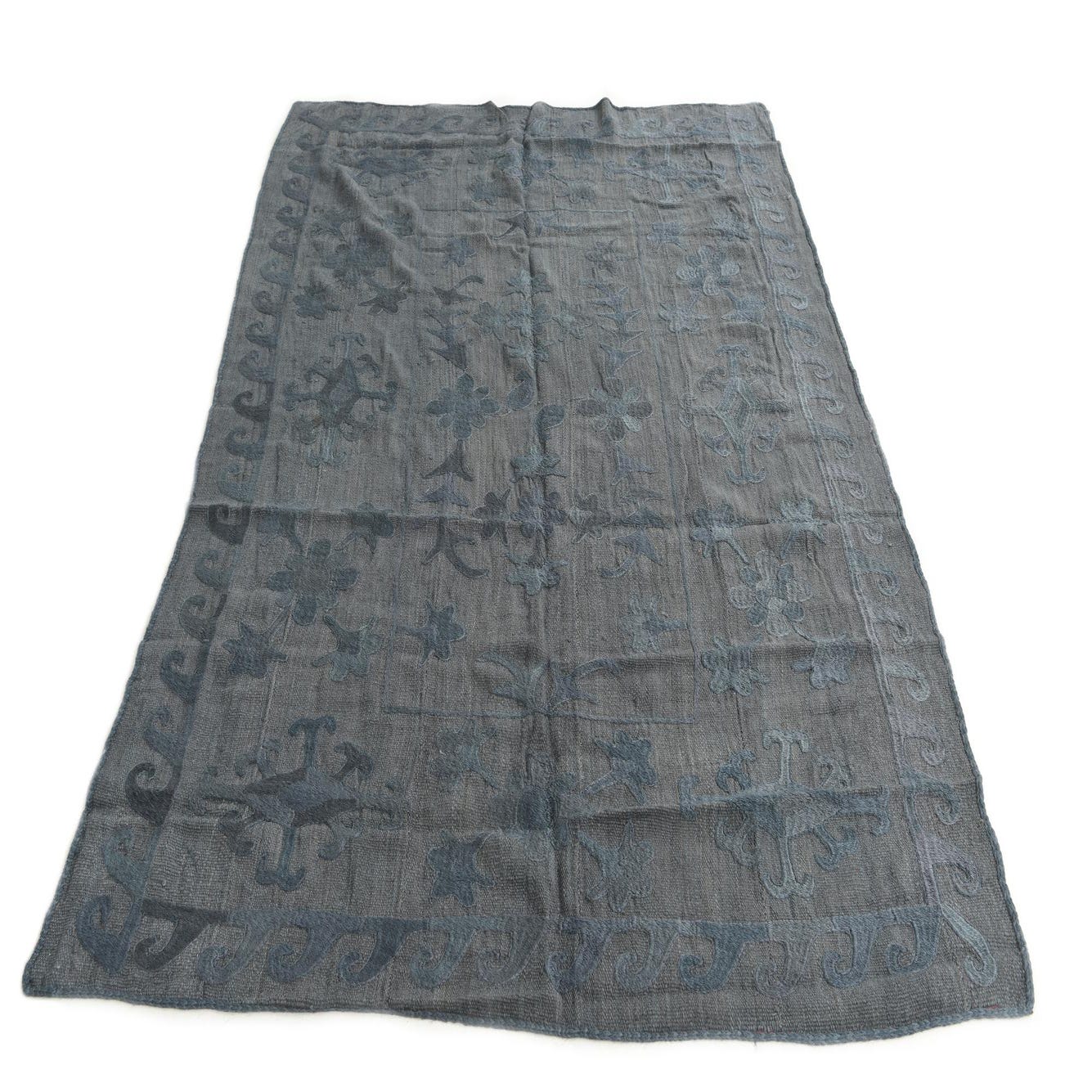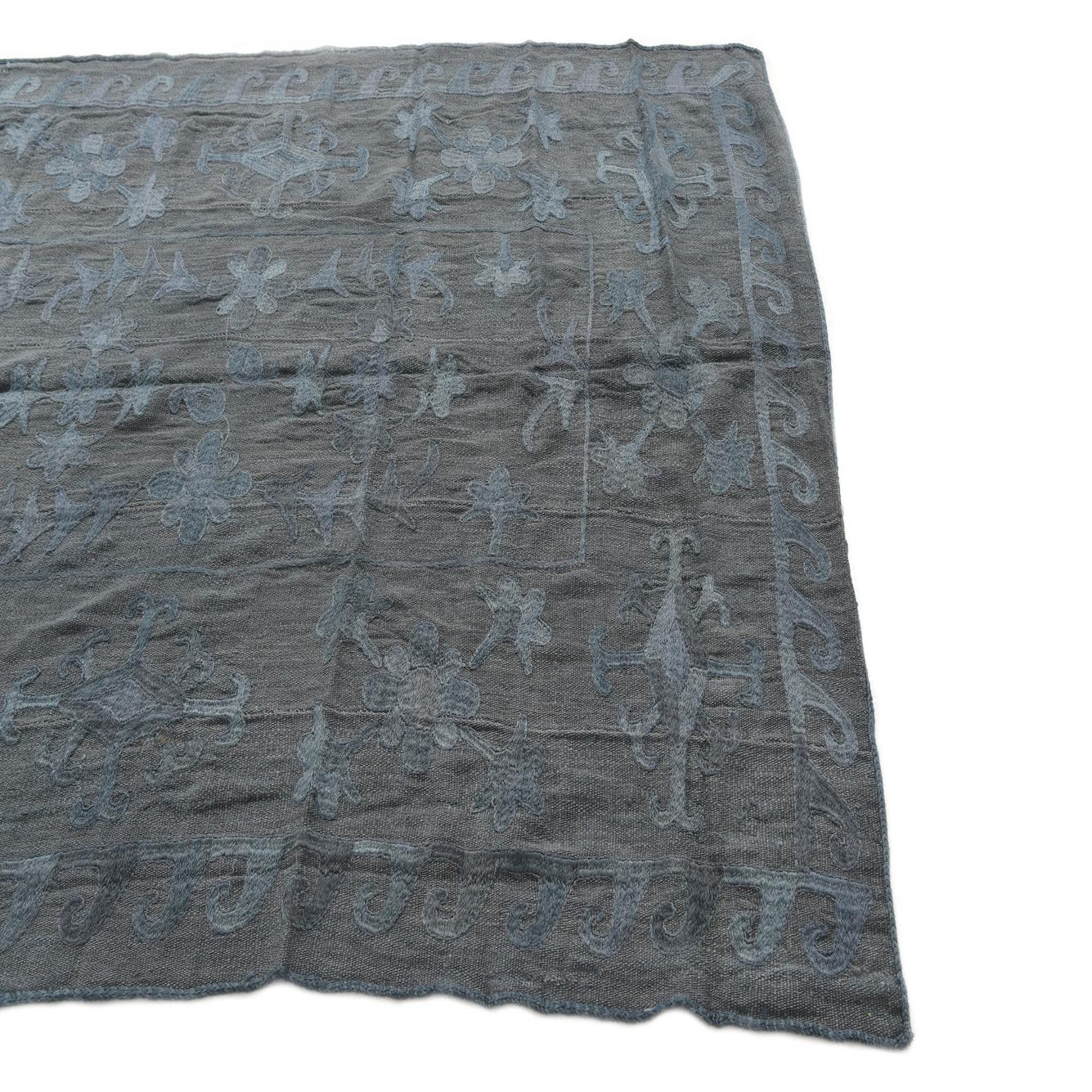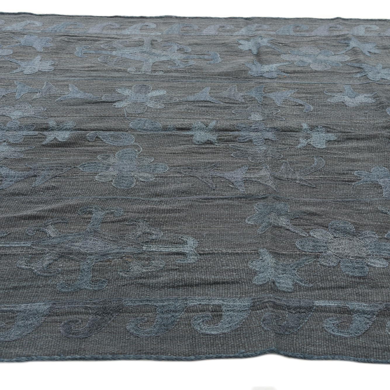 The Kilim Suzani rug is a hand woven piece that exemplifies craftsmanship in its detailed patterns and durable design. It is woven with 100% wool, which naturally lends a soft and resilient texture to the rug. The dimensions of this particular rug are 5 feet by 8 feet, providing a substantial area that can serve as a focal point in a variety of settings.