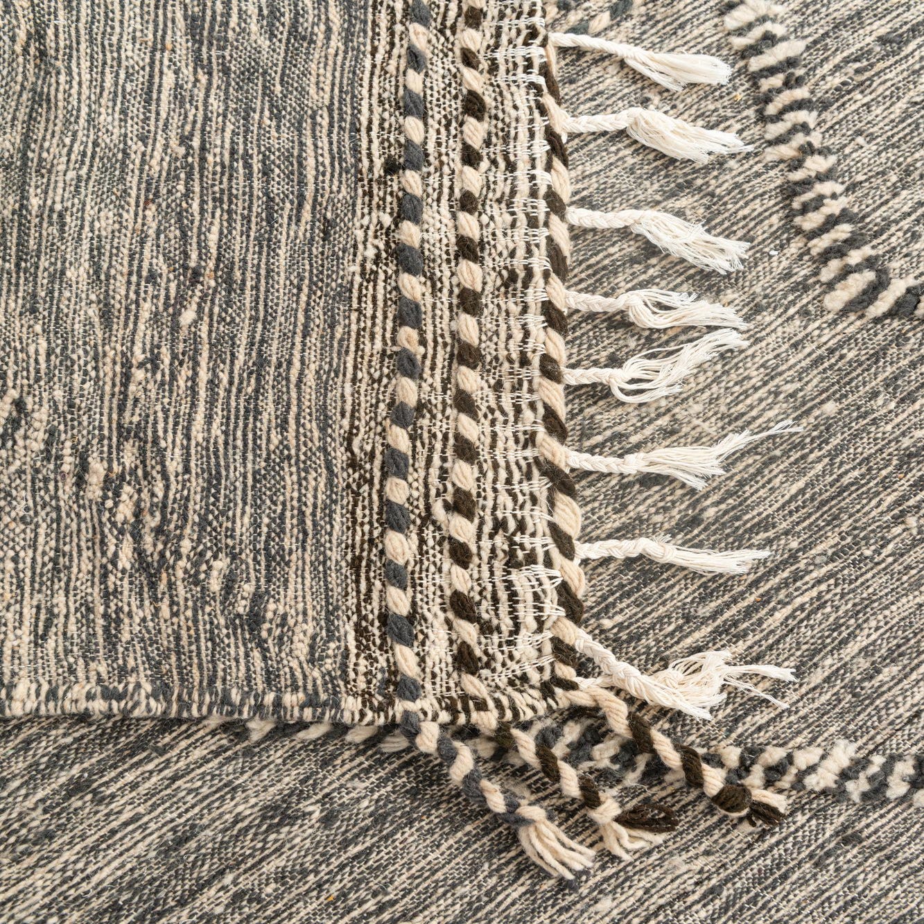Primary color is Dark Gray. Colors in this rug include: Dark Gray, Ivory.