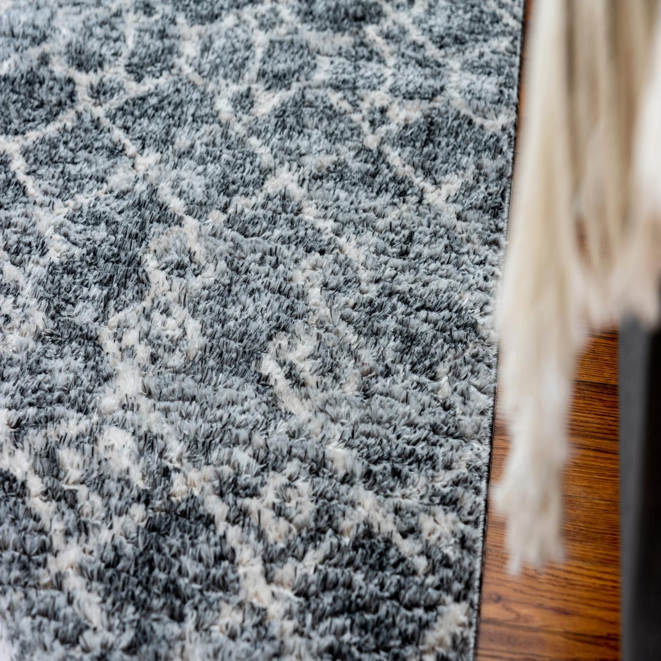 Primary color is Dark Gray. Colors in this rug include: Dark Gray, Ivory.