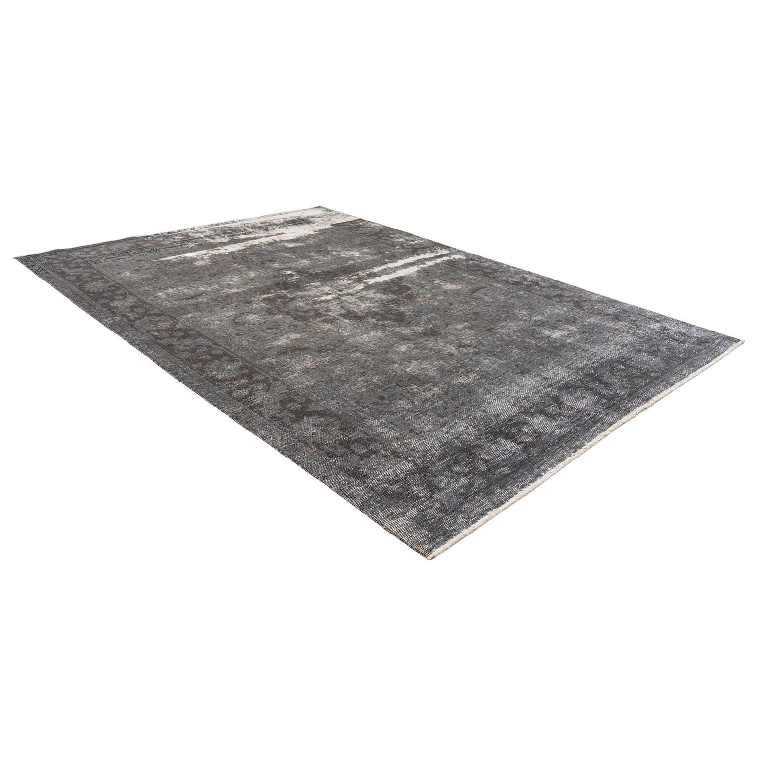 A 6x9 rectangular gray and silver wool rug with a distressed Persian medallion pattern, ideal for a living room.