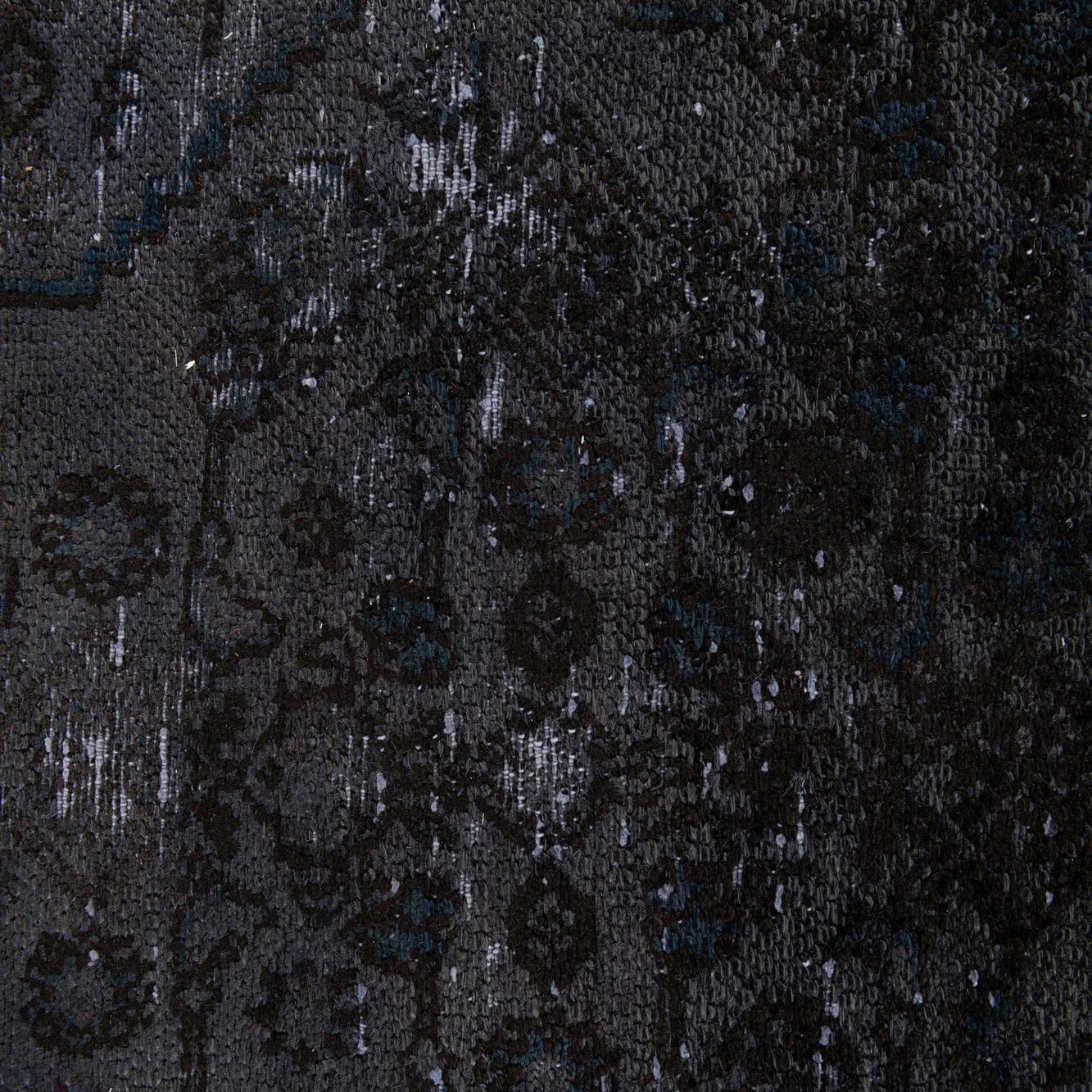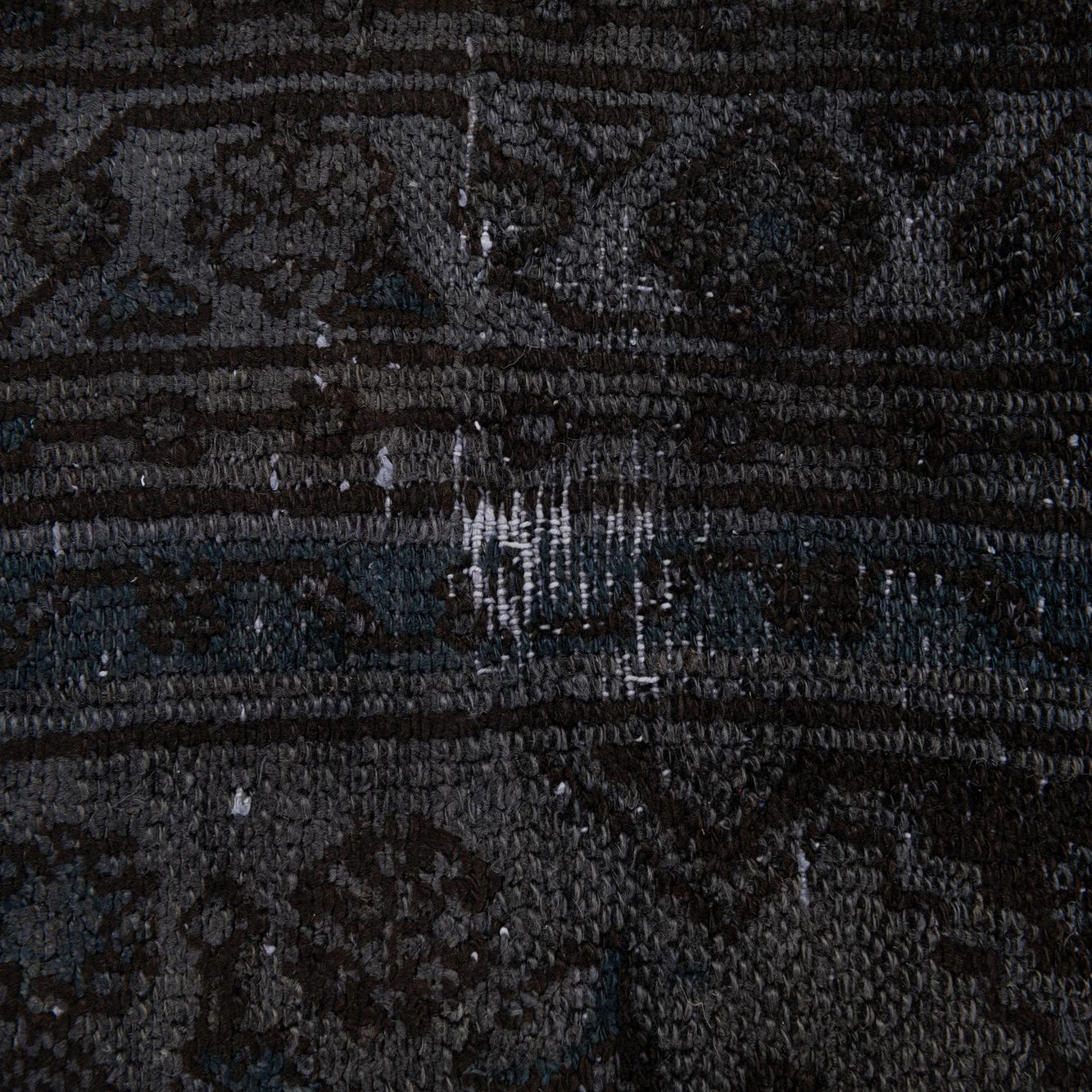 Primary color is Dark Gray. Colors in this rug include: Dark Gray, Brown, Navy Blue.