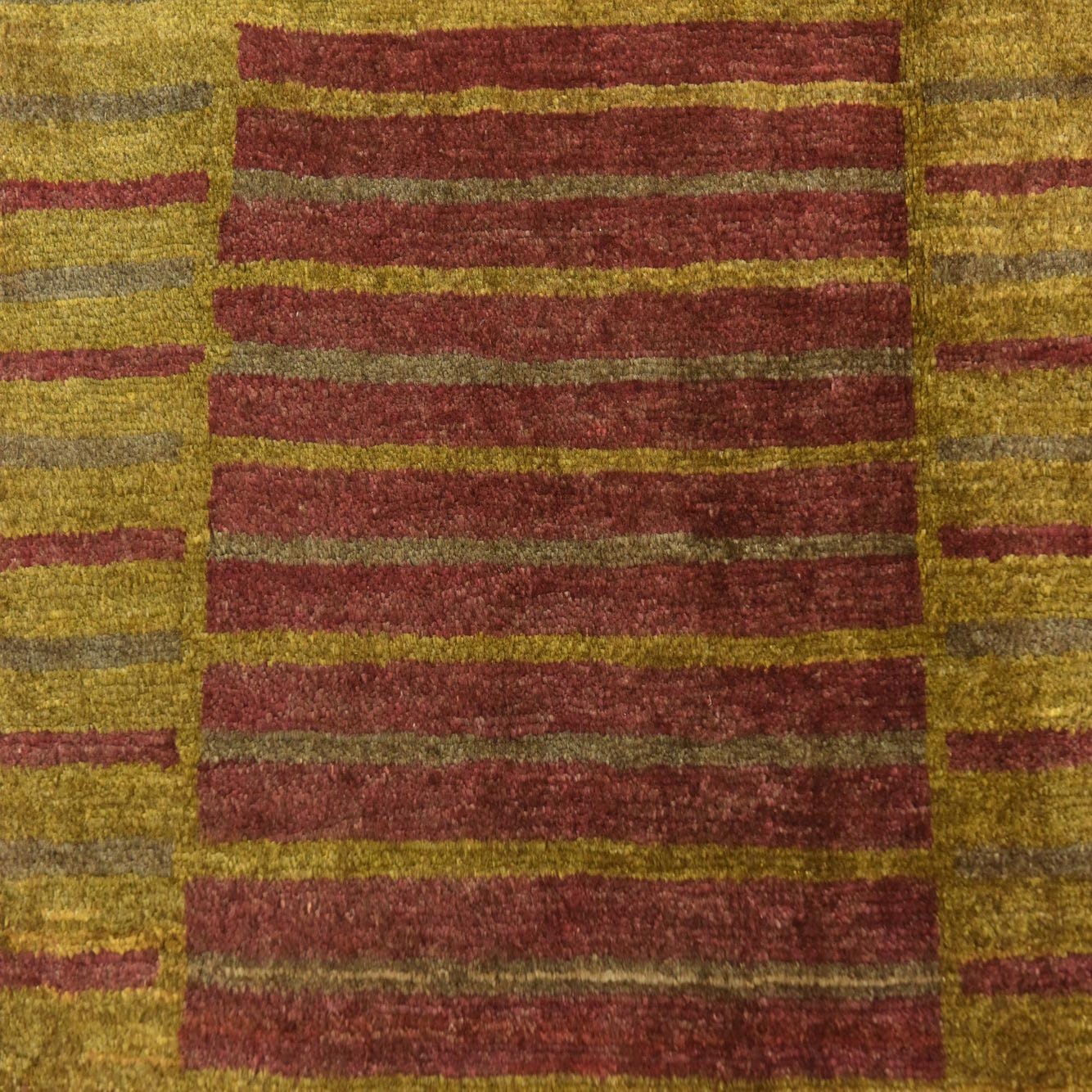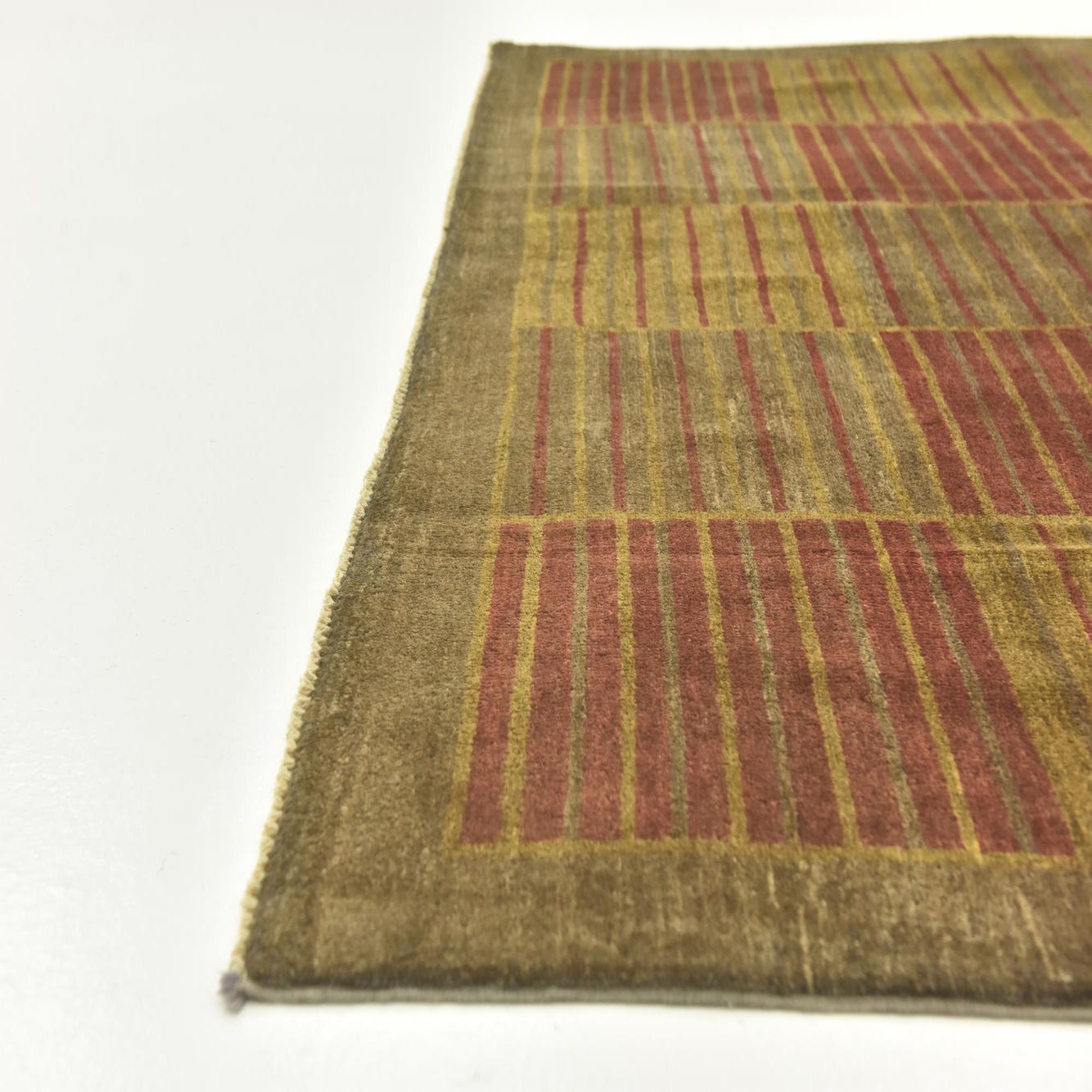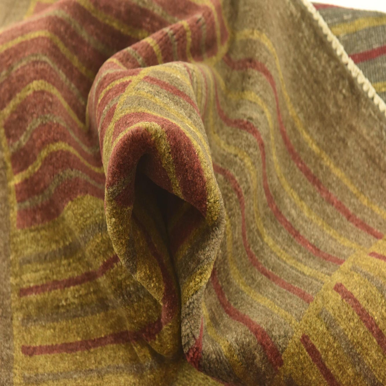 The Modern Ziegler Collection rug is a tasteful addition to any living space with its rich palette of dark gray, red, and gold. Hand-knotted from 100% hand-spun wool, this 7x10 rug presents a durable and plush surface, ideal for adding warmth and sophistication. Defined by its bold, contemporary stripe pattern, the rug brings an element of visual interest and modernity to interior spaces. The dark gray background provides a grounding base, allowing the stripes to create a sense of movement and rhythm.