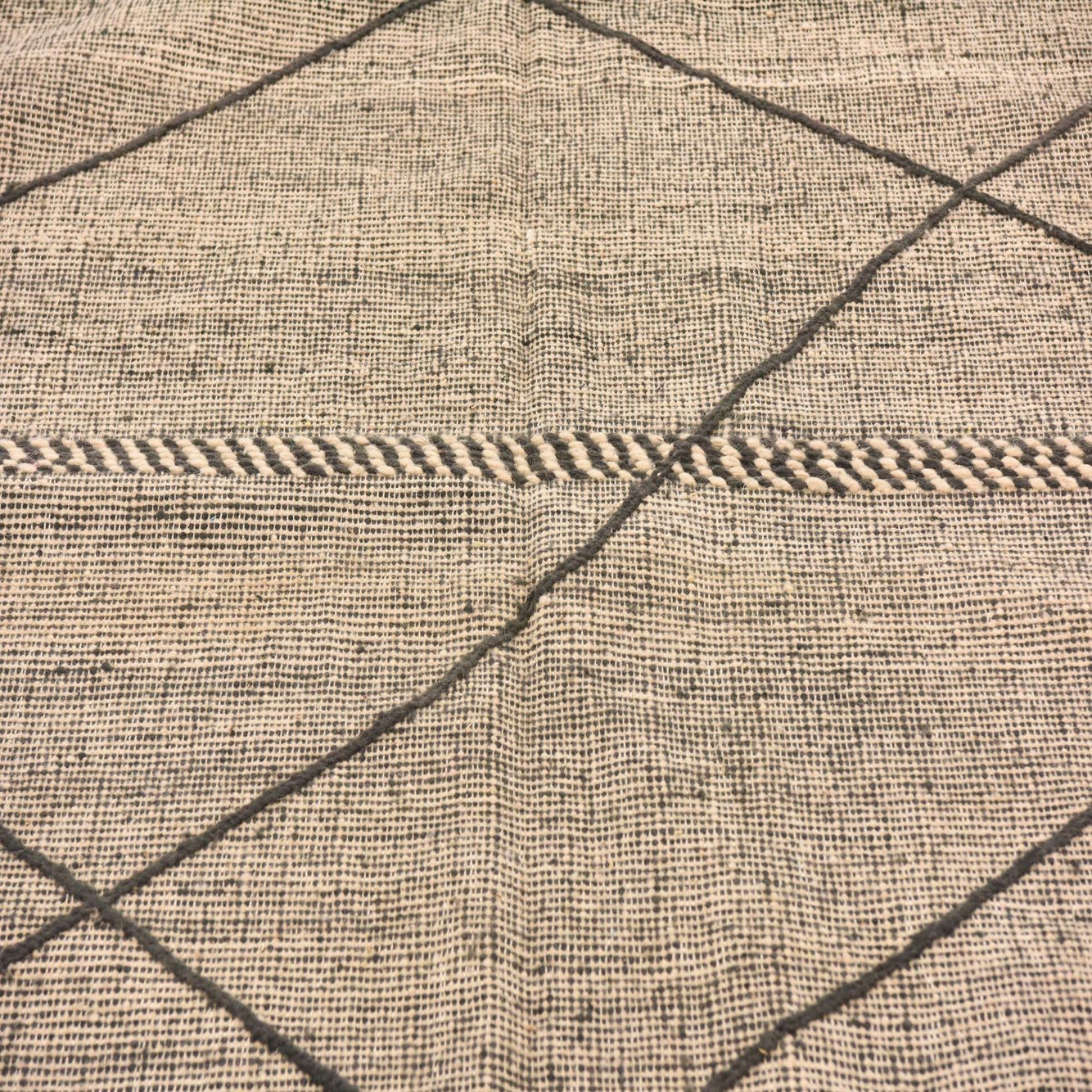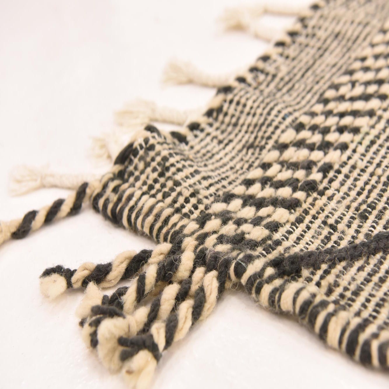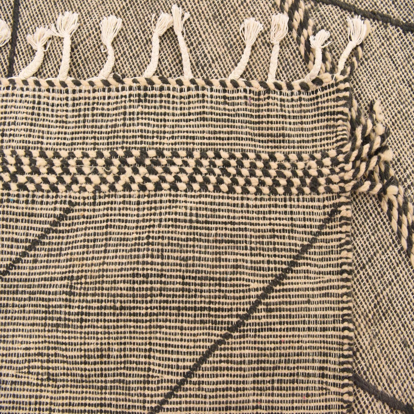 Given its neutral color palette and timeless pattern, this rug can seamlessly integrate with a variety of interior designs, from contemporary minimalist spaces to more eclectic or industrial settings. Its size makes it suitable as a central piece in a living room, under a dining table, or as an anchor in an open-plan space where it can define a section of the room. The woolen composition provides a textural component that can bring warmth to interiors and pair well with both wood and metal finishes.