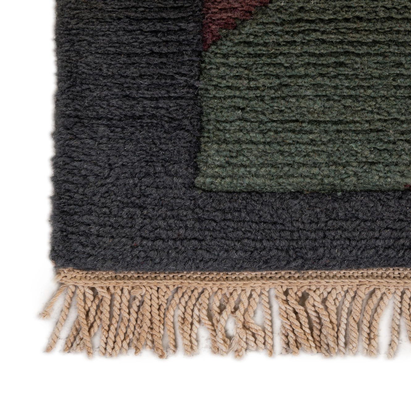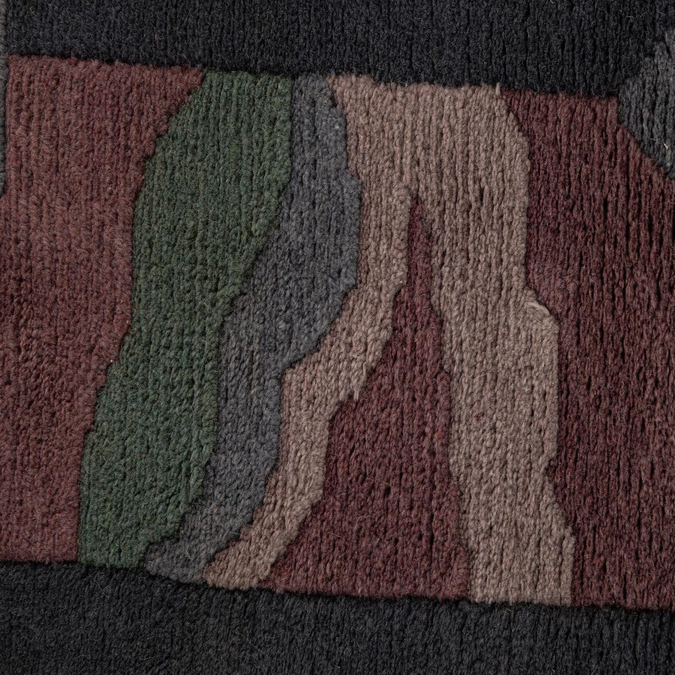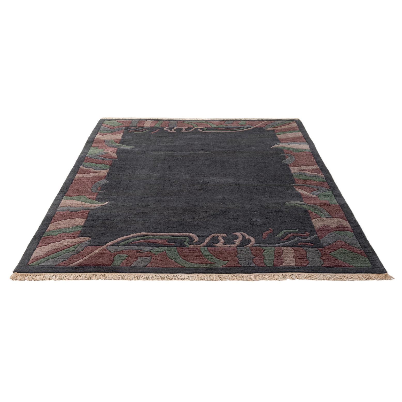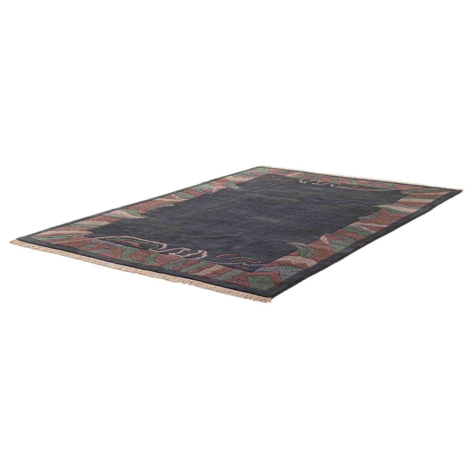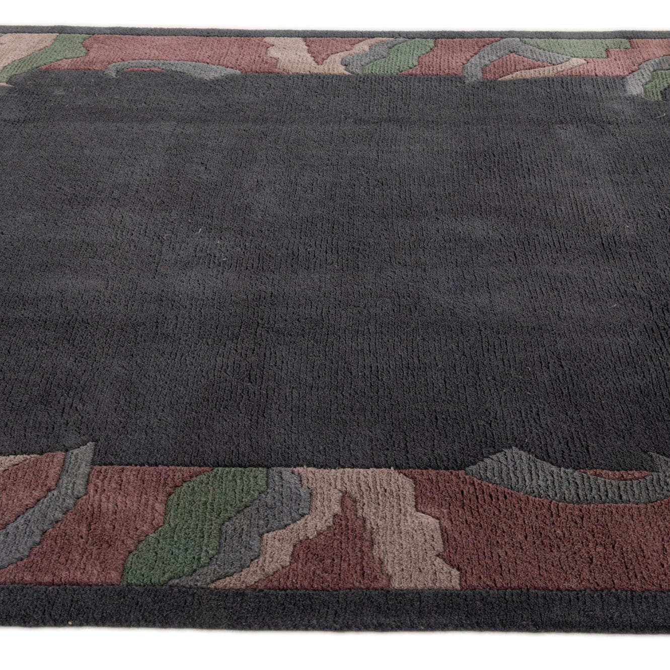 Primary color is Dark Gray. Colors in this rug include: Dark Gray, Green, Purple, Violet, Gray.