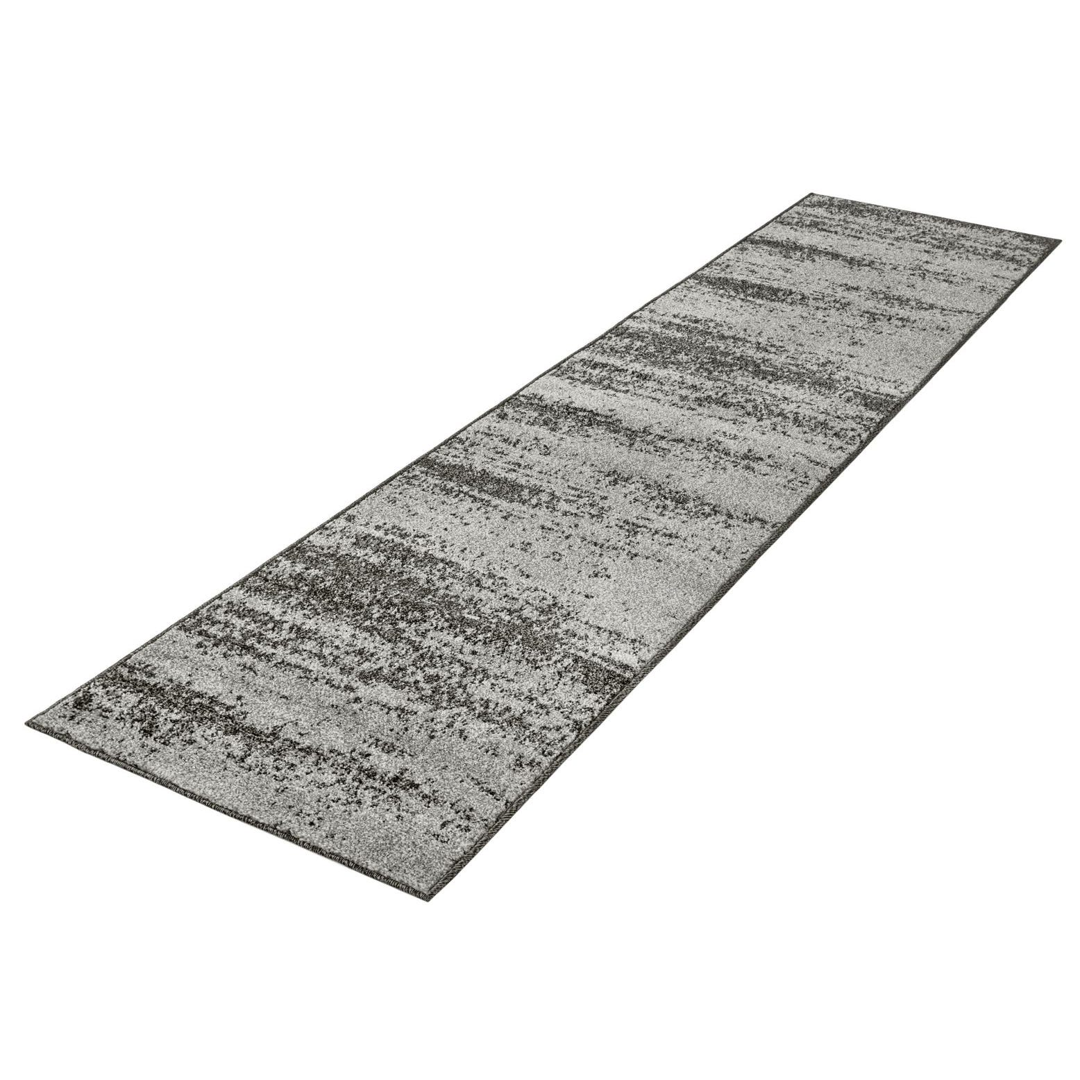 Designed for transitional and contemporary spaces, this runner works well in hallways, entryways, or alongside kitchen islands where a streamlined, neutral anchor is needed. It pairs naturally with cool wood or concrete floors, metal and glass furnishings, and charcoal or monochrome upholstery to reinforce a modern, cohesive palette.