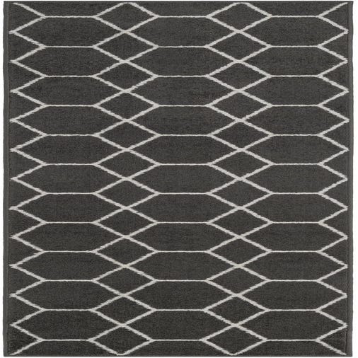 Primary color is Dark Gray. Colors in this rug include: Dark Gray, Ivory.