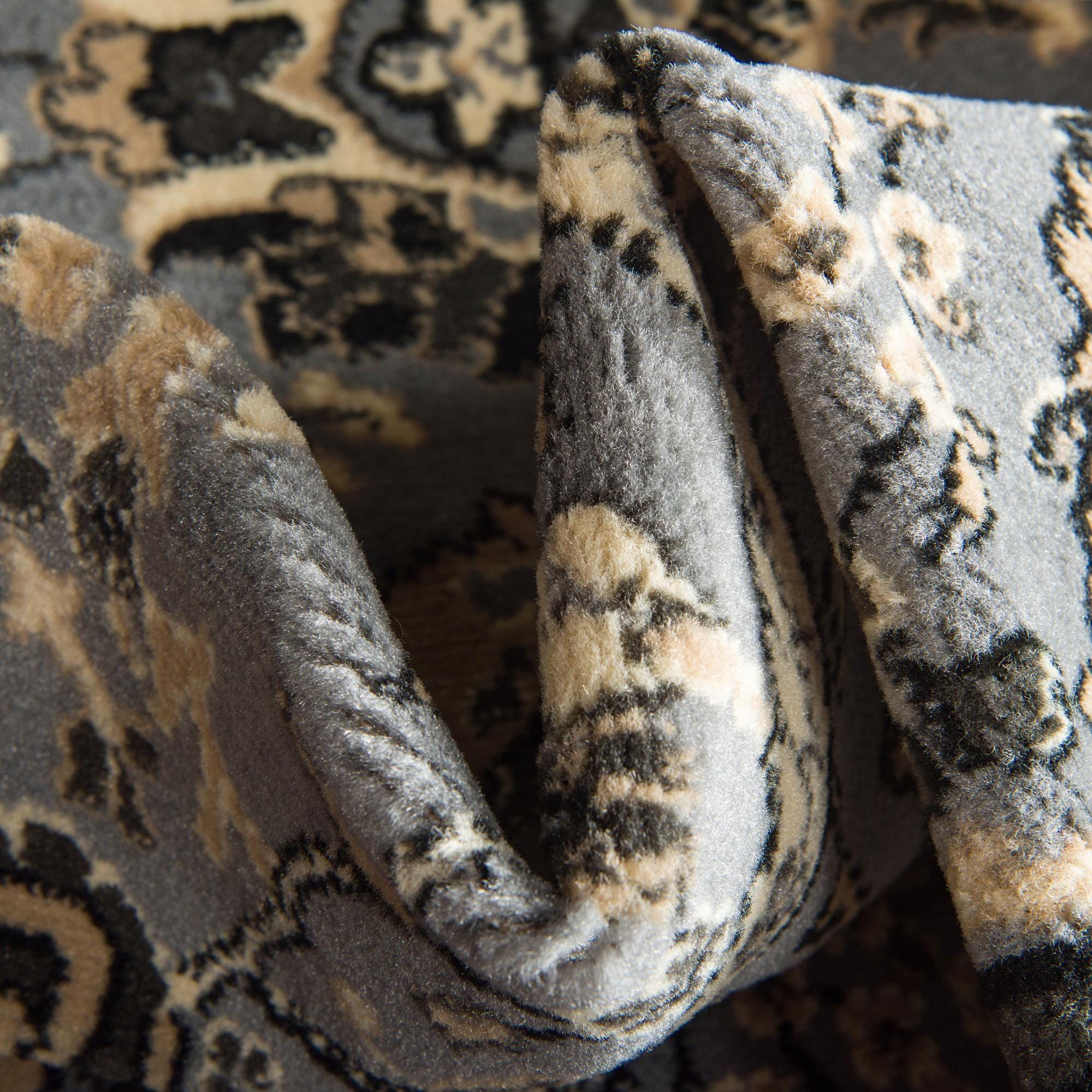 Primary color is Dark Gray. Colors in this rug include: Dark Gray, Black, Gray, Ivory, Tan.