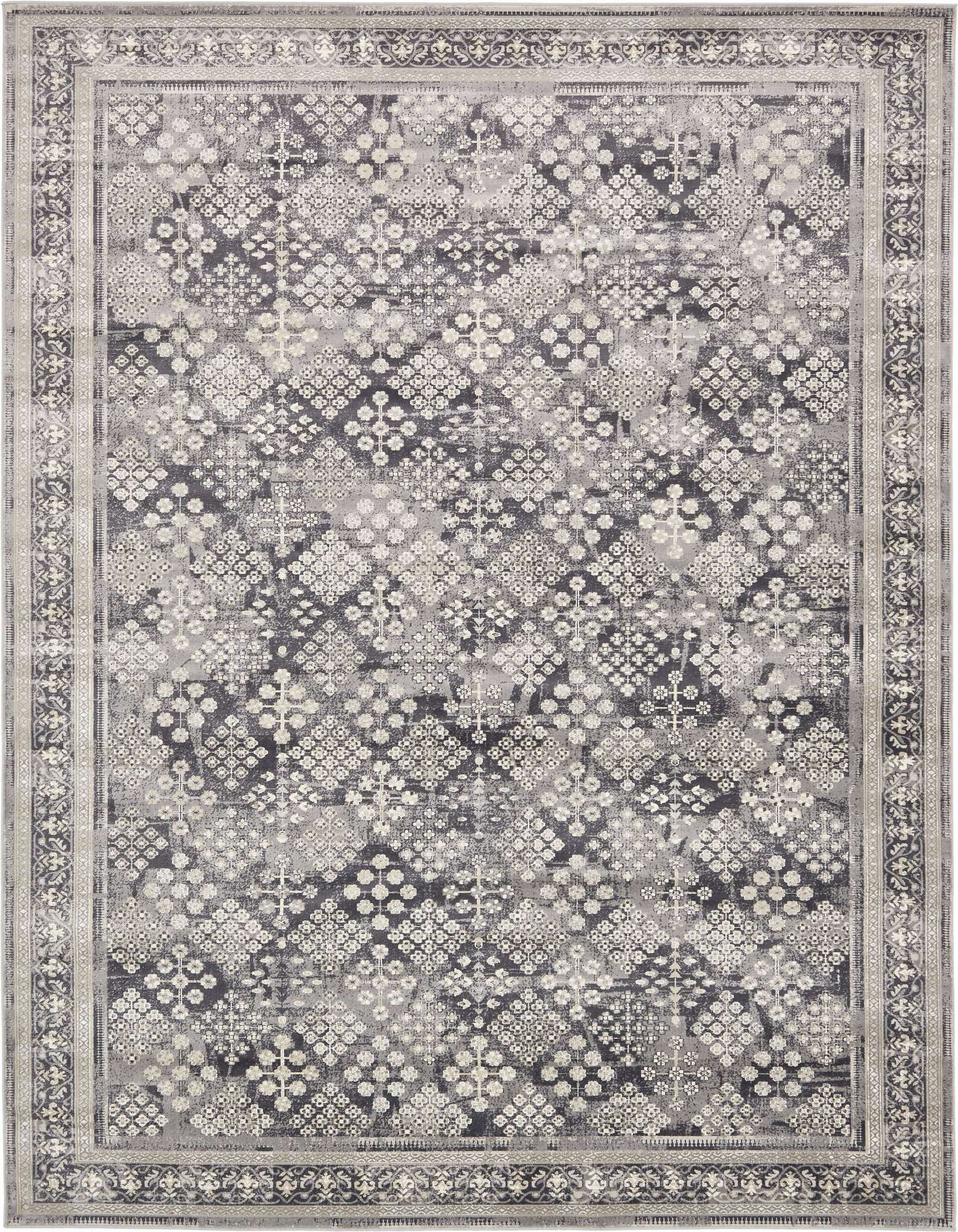 Primary color is Dark Gray. Colors in this rug include: Dark Gray, Beige, Ivory.