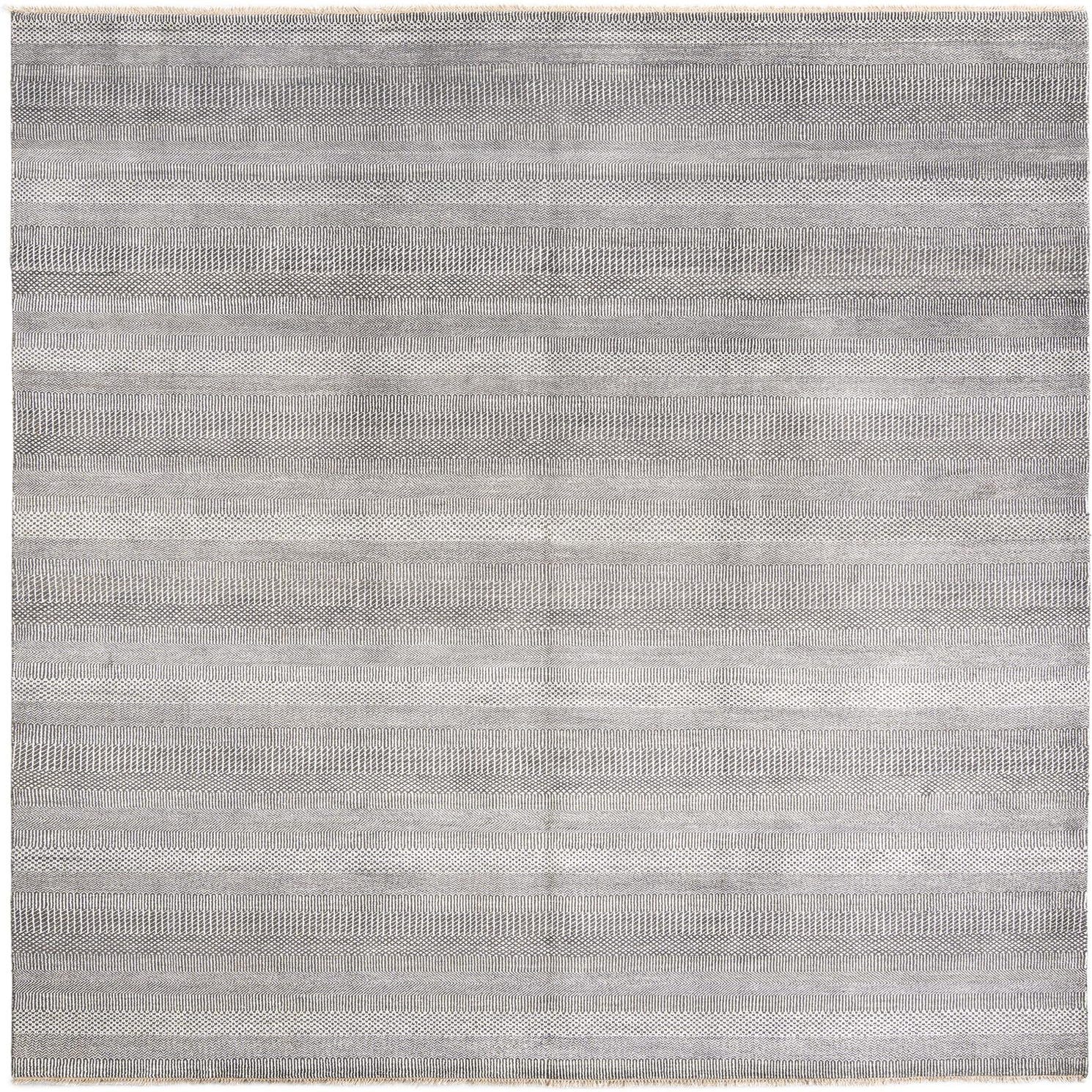 A 9x12 rectangular gray Persian wool rug with textured horizontal stripes, ideal for a living room.