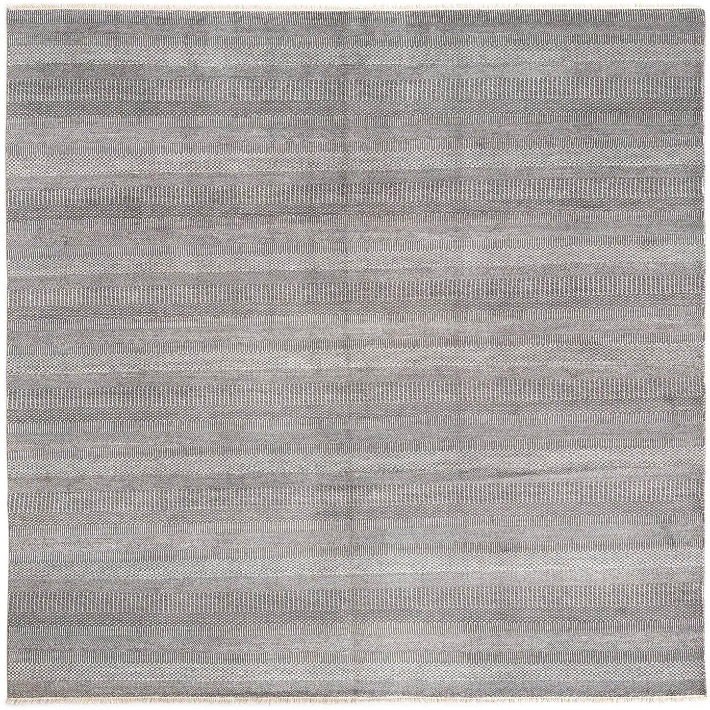 A 9x12 rectangular gray Persian wool rug with subtle horizontal striped patterns, suitable for a living room.