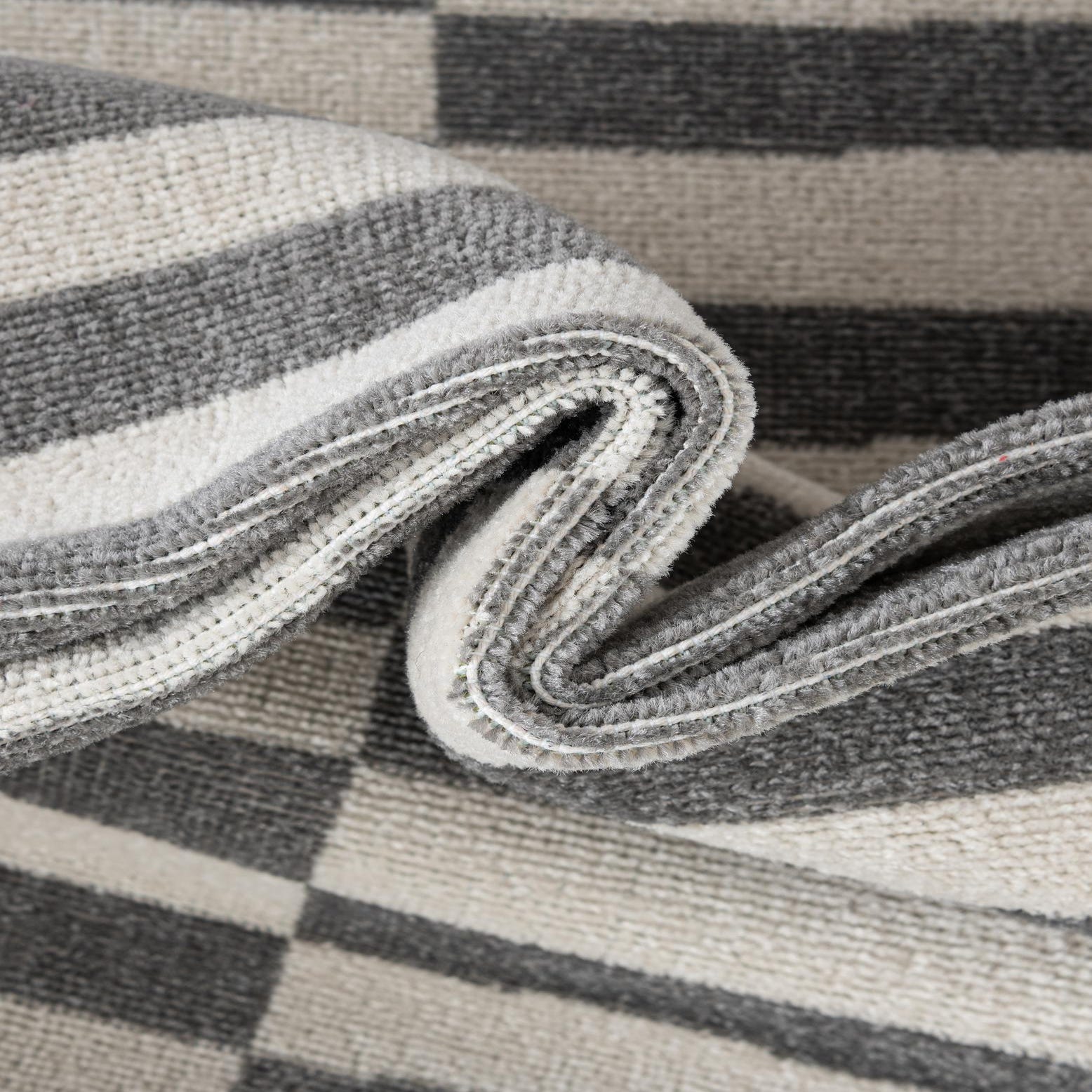 Primary color is Dark Gray. Colors in this rug include: Dark Gray, Ivory.