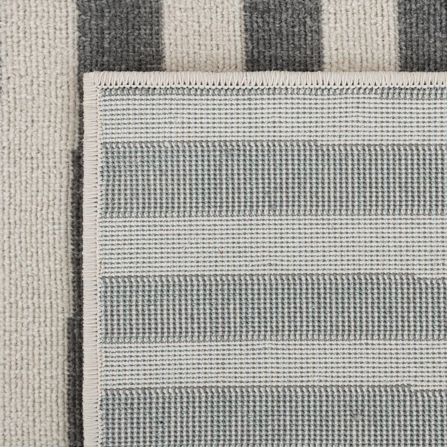 Machine made from 100% polypropylene, this low-profile rug has a tightly woven surface that feels smooth underfoot with a faint, tactile rib where the ivory stripes run. Its consistent texture lays flat and supports furniture placement with ease. Use it to anchor a modern living room under a low sofa and coffee table, define a dining area beneath a rectangular table to emphasize the linear pattern, or add a crisp, graphic layer to a home office or entryway. It pairs especially well with light wood tones, metal accents, and a neutral palette, or soften the look with warm textiles for added contrast.