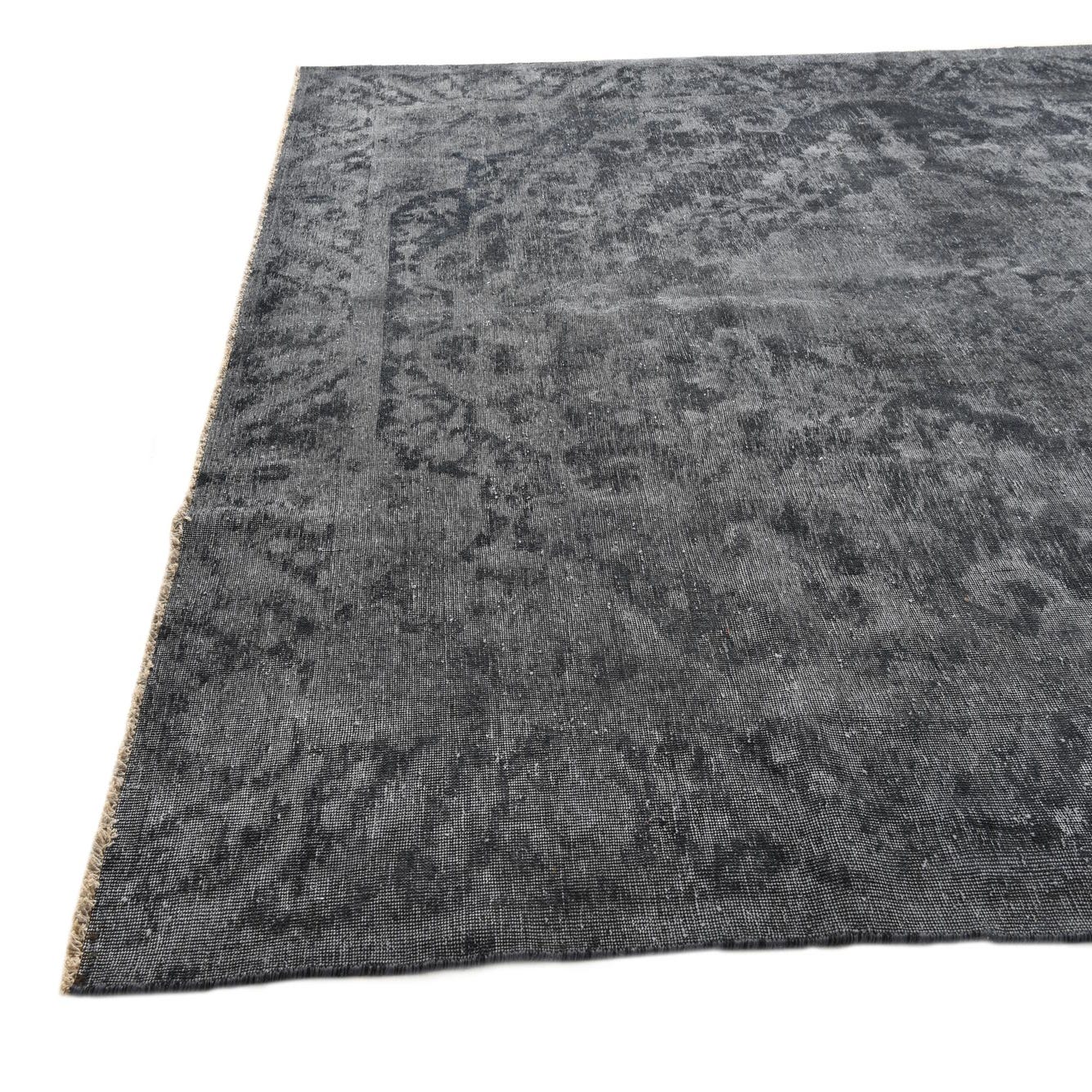 The Ultra Vintage collection presents a sophisticated 9x12 area rug, hand-knotted from 100% wool for enduring quality and a luxuriously soft texture. The design features a classic motif, rendered in a tonal palette of dark gray and black, creating a timeless aesthetic with visual depth and intrigue. The background's dark gray color enhances the subtle contrast of the intricate pattern, offering a sense of elegance and refinement.