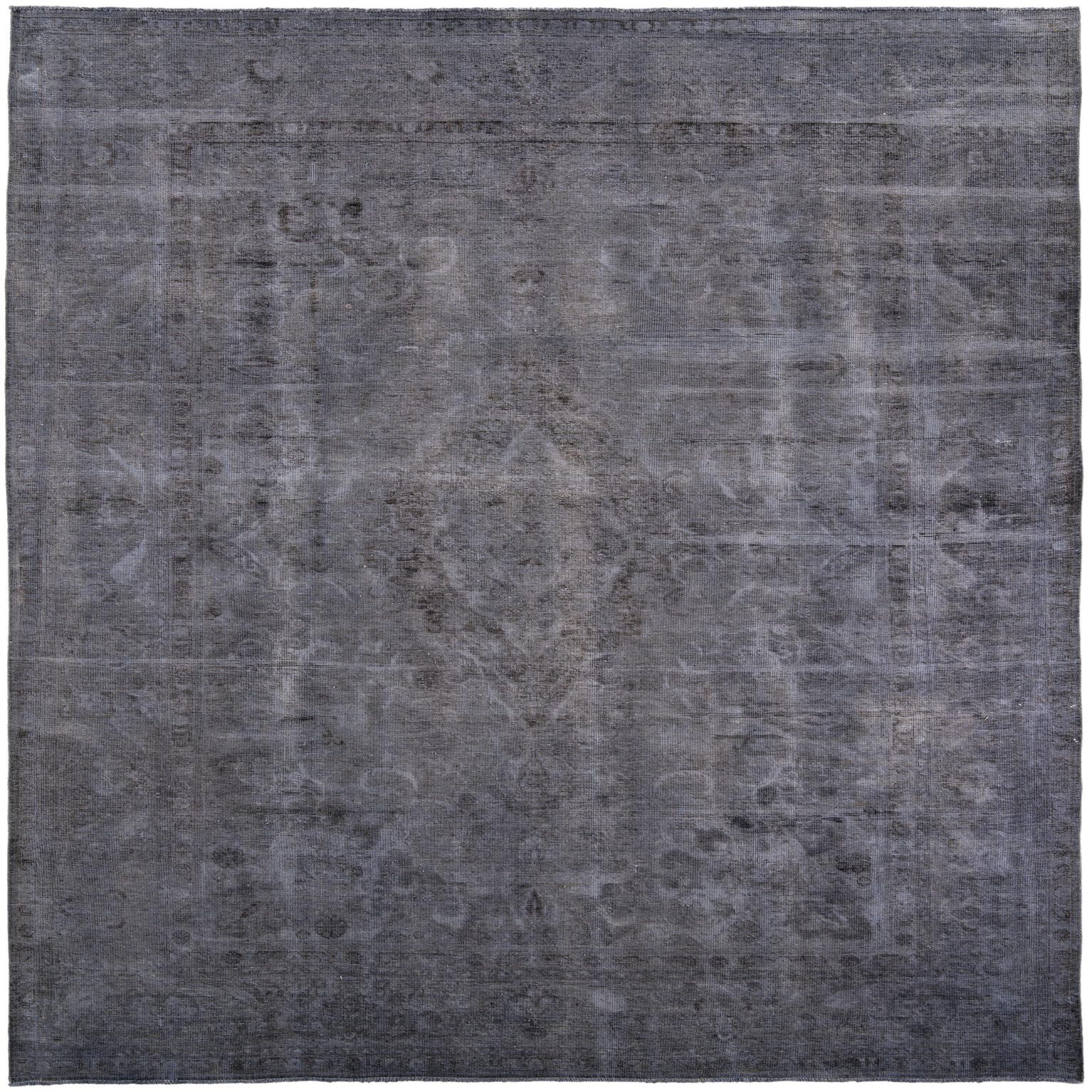A 9x12 rectangular gray wool area rug with a subtle distressed Persian medallion pattern, suitable for a living room.