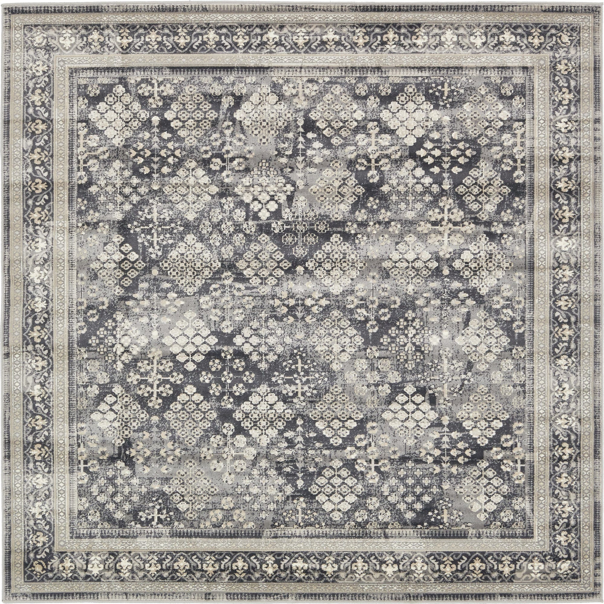 Primary color is Dark Gray. Colors in this rug include: Dark Gray, Beige, Ivory.