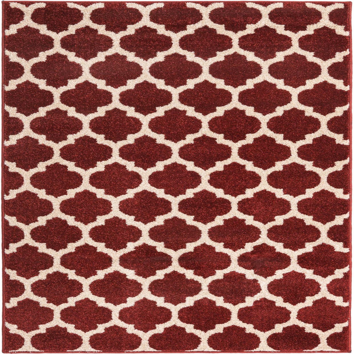 A 6 ft runner rug featuring a modern lattice pattern in deep red and cream, ideal for a hallway or kitchen.