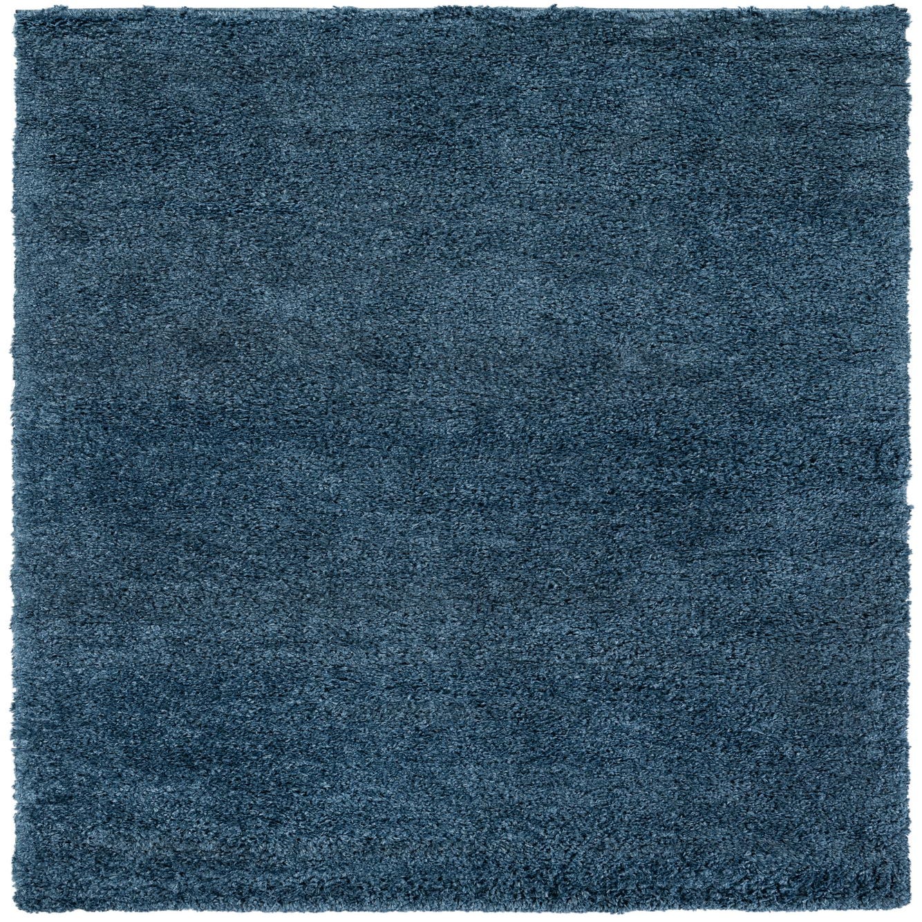 A rectangular 6x9 deep blue shag area rug with a textured pile, perfect for a cozy living room.