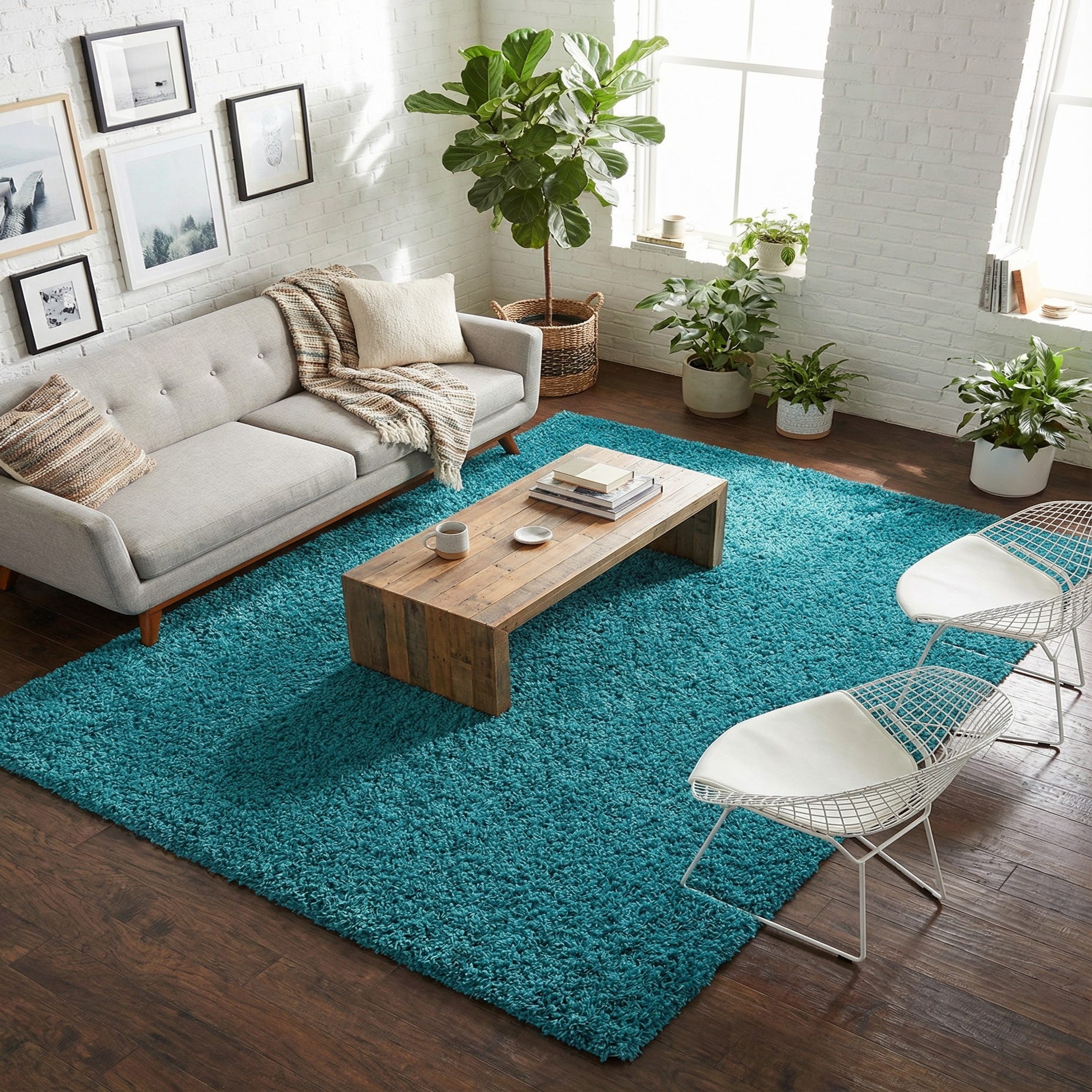 This rug works well as a bold color anchor in a contemporary living room or a cozy layer at the foot of a bed, and it pairs naturally with light woods, crisp whites, or neutral grays. Use it to bring a burst of sea-glass tone to a coastal scheme, add playful color to a child’s or teen’s space, or layer it in a relaxed, bohemian setting for extra tactile contrast.
