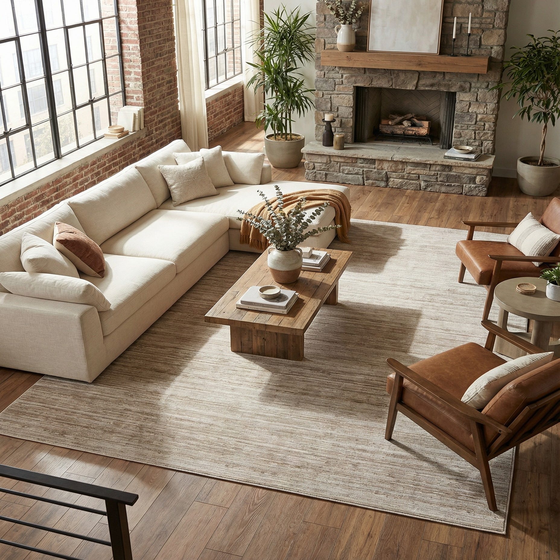 Primary color is Driftwood Beige. Colors in this rug include: Driftwood Beige, Brown, Light Brown.