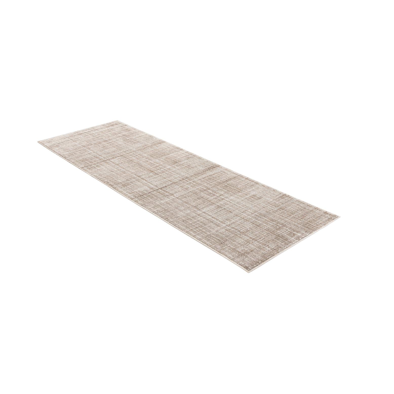 A 6 ft runner rug in shades of brown and tan with a subtle textured, flatweave pattern, ideal for a hallway.