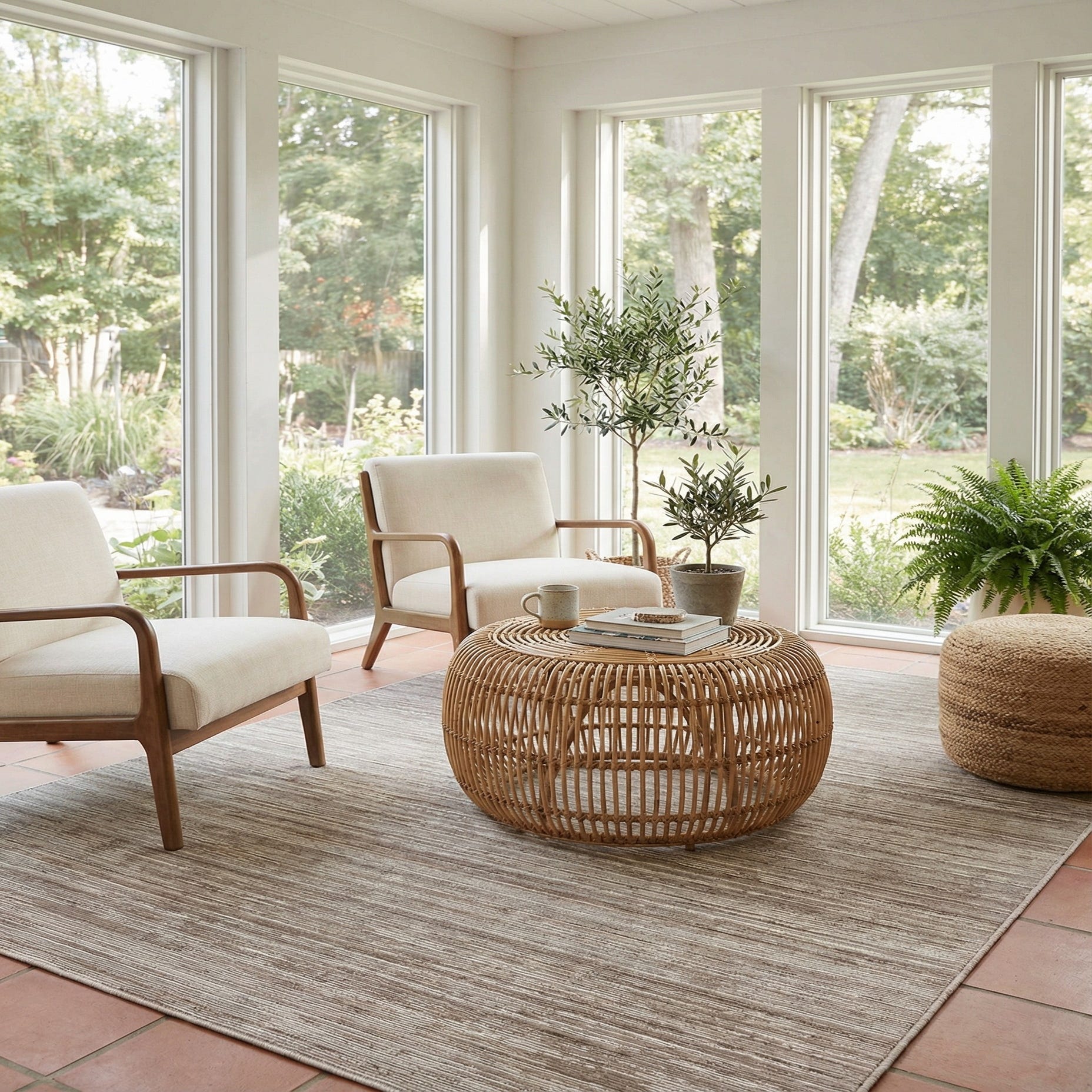 Primary color is Driftwood Beige. Colors in this rug include: Driftwood Beige, Brown, Light Brown.