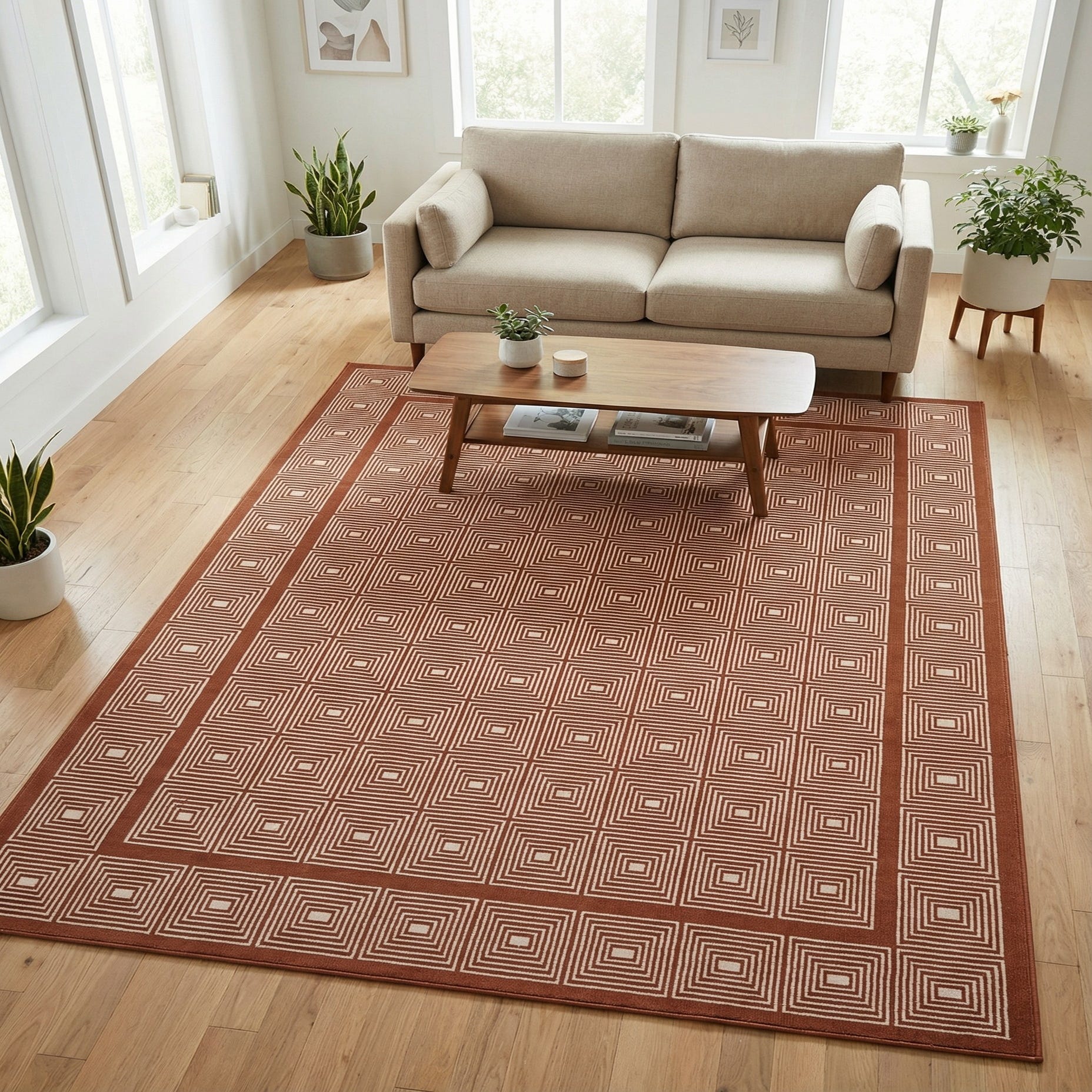 Machine-made from 85% polypropylene and 15% chenille, the rug has a low, dense pile with soft chenille accents that give a gentle, velvety touch underfoot and a faintly raised texture along the pattern lines. It works well layered in a living room beneath a sofa and coffee table, as an anchor in a bedroom, or to warm a home office or entryway. Pair it with natural wood tones, neutral linen upholstery, and warm metal accents for a cohesive look, or use it to introduce a subtle color shift in a minimalist or mid-century modern scheme.