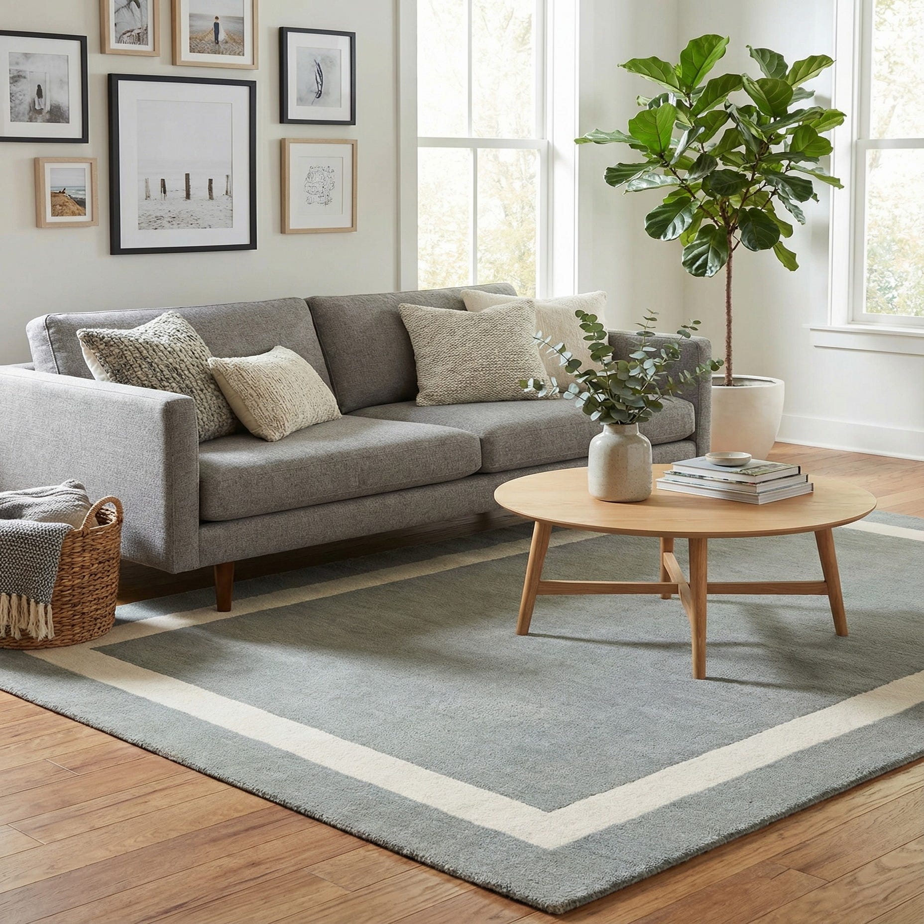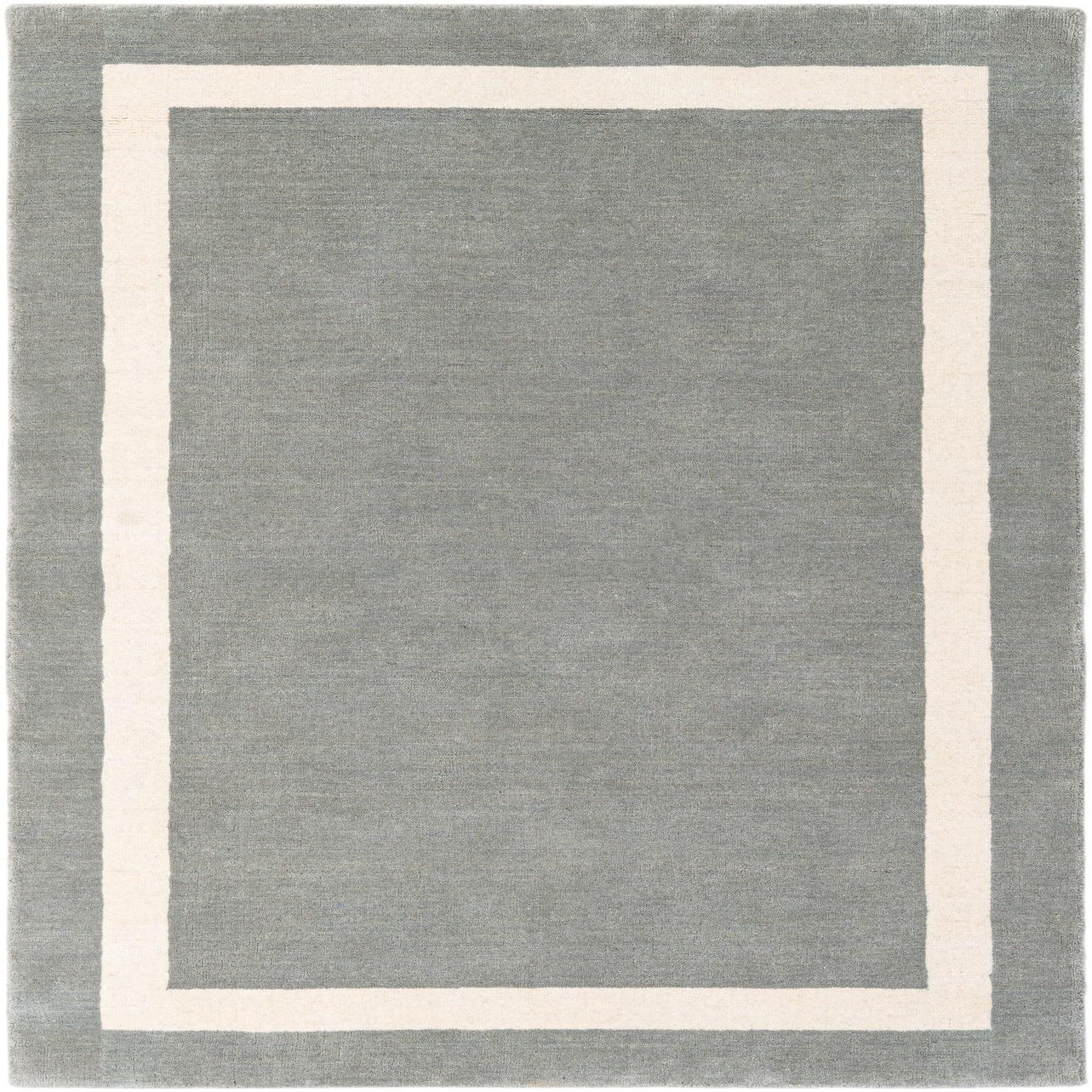 A 3x5 rectangular gray area rug with a thick off-white border, showcasing its medium pile texture.