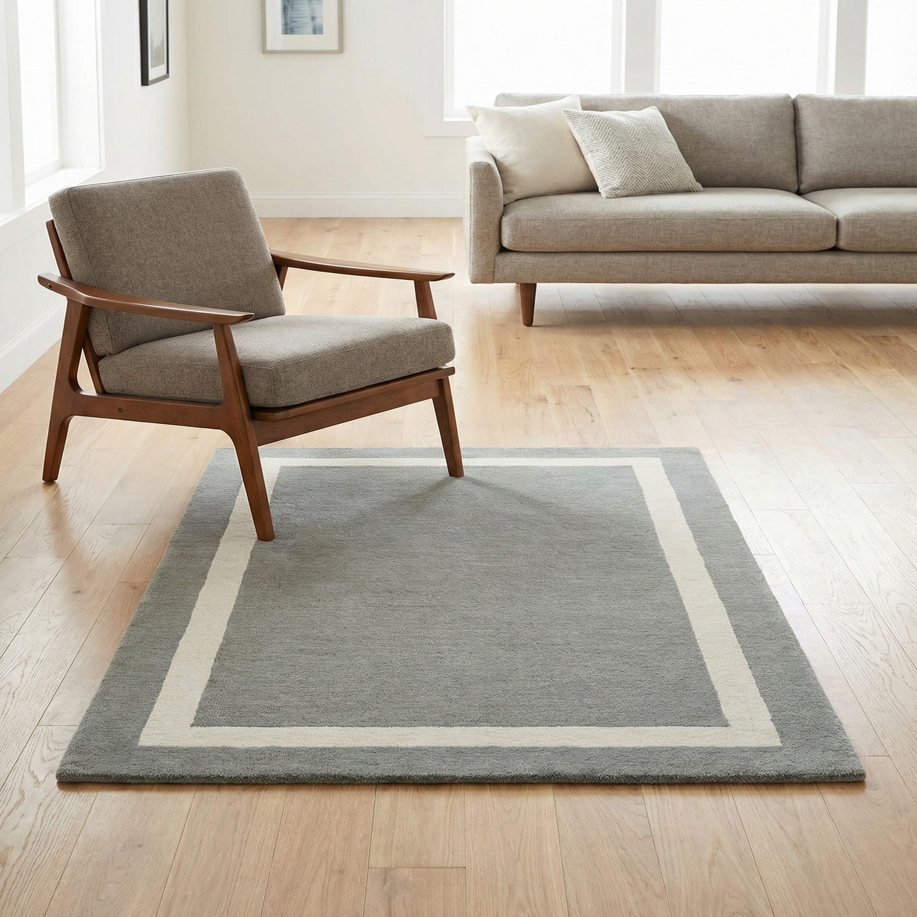 A 3x5 rectangular gray area rug with a thick off-white border, showcasing its medium pile texture.