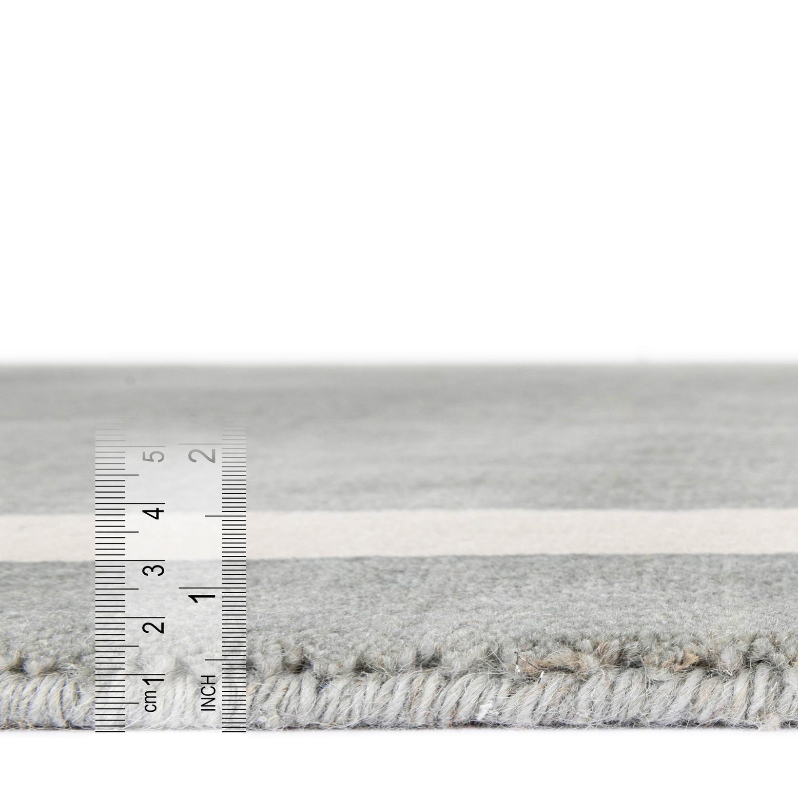 A clean, modern runner with a crisp ivory rectangular border set against an earl gray field. The design is minimalist and geometric, with the narrow ivory frame providing a subtle contrast that defines the rug’s proportions and pathway. Hand made from 80% wool and 20% cotton, the surface has a warm, slightly textured hand—wool lends a soft, springy feel while the cotton adds a bit of structure—resulting in a comfortable underfoot experience with a gentle, low-profile loft.