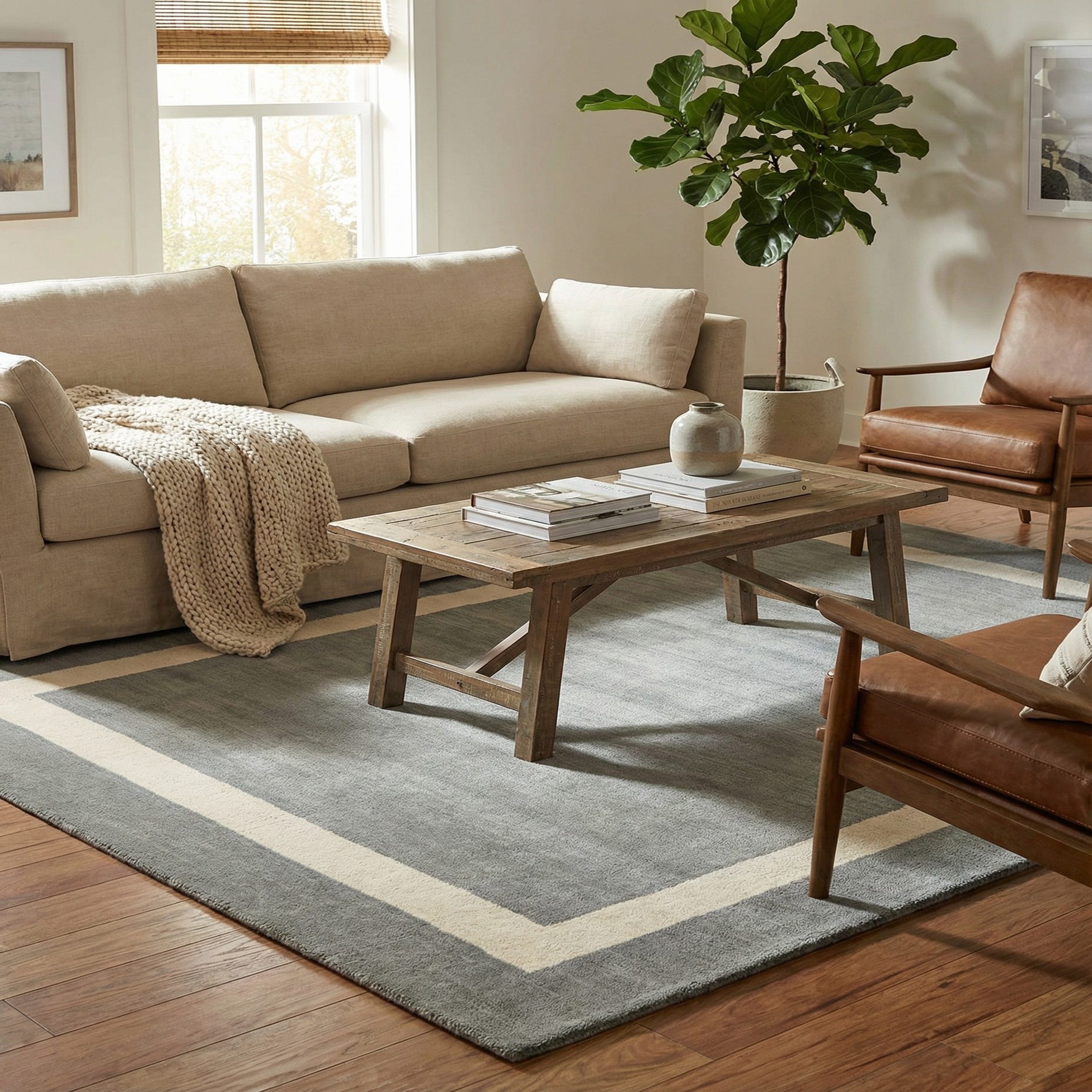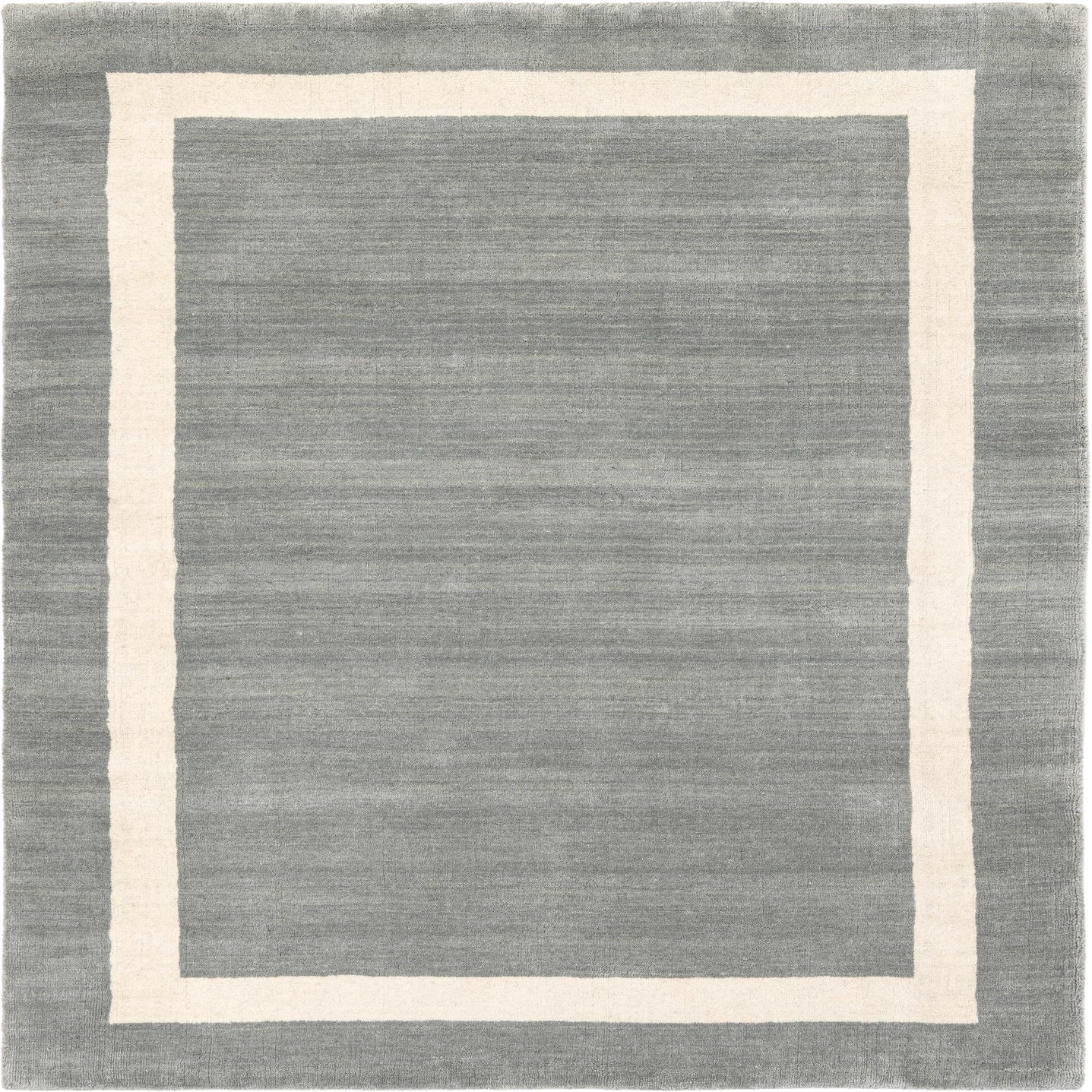 A 4x6 rectangular gray area rug with a thick off-white border, showcasing its modern solid design.