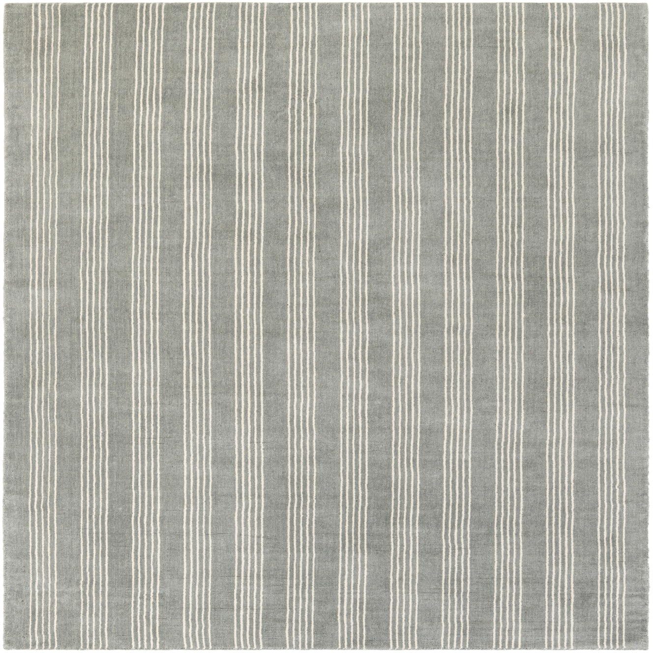 Hand made of 80% wool and 20% cotton, the rug has a soft, natural wool pile with the cotton contributing a supportive weave and a slightly tactile surface underfoot. It works well to define a seating area in a living room, anchor a bedroom arrangement, or bring quiet structure to a home office or entry. The neutral Earl Gray and ivory palette makes it easy to layer with wood tones, cool metals, or lighter linen textiles.