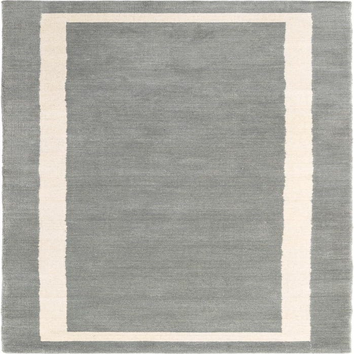 A pared-back border design frames a broad field of Earl Gray, with a soft Ivory band that provides quiet contrast and structure. Hand made of 80% wool and 20% cotton, the rug has a tactile, low-to-medium pile: the wool surface feels warm and resilient underfoot while the cotton component gives a bit of textured definition along the border.