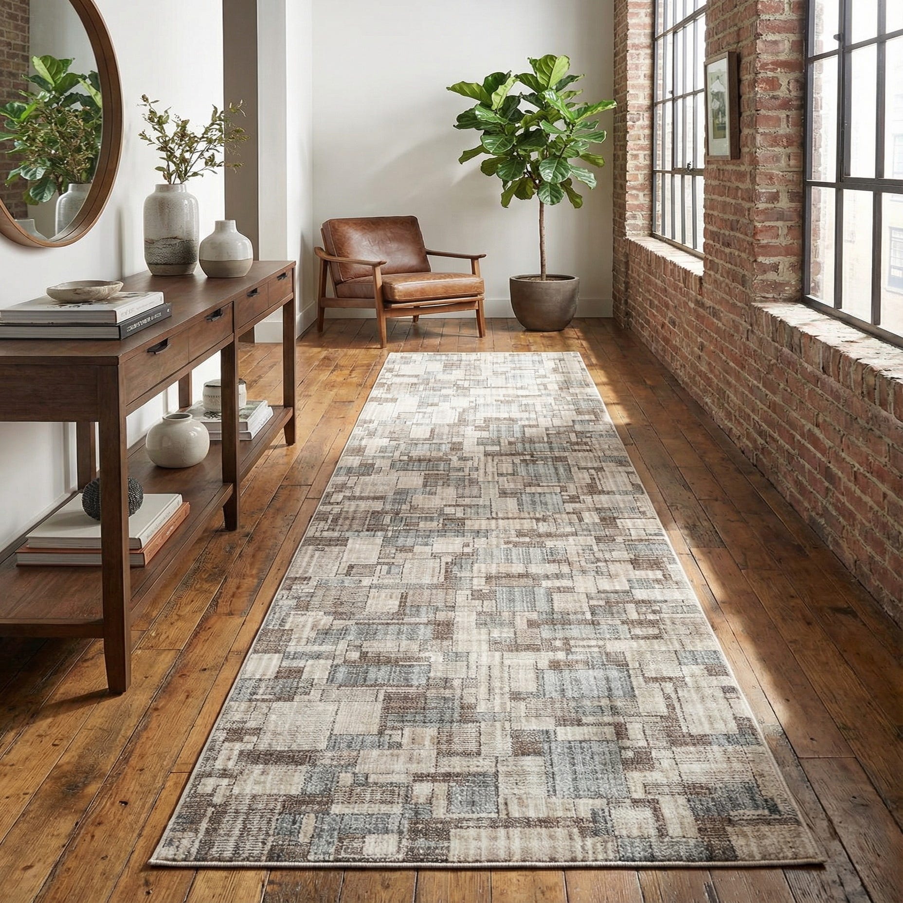 Primary color is Echo Beige. Colors in this rug include: Echo Beige, Brown, Gray, Light Brown.