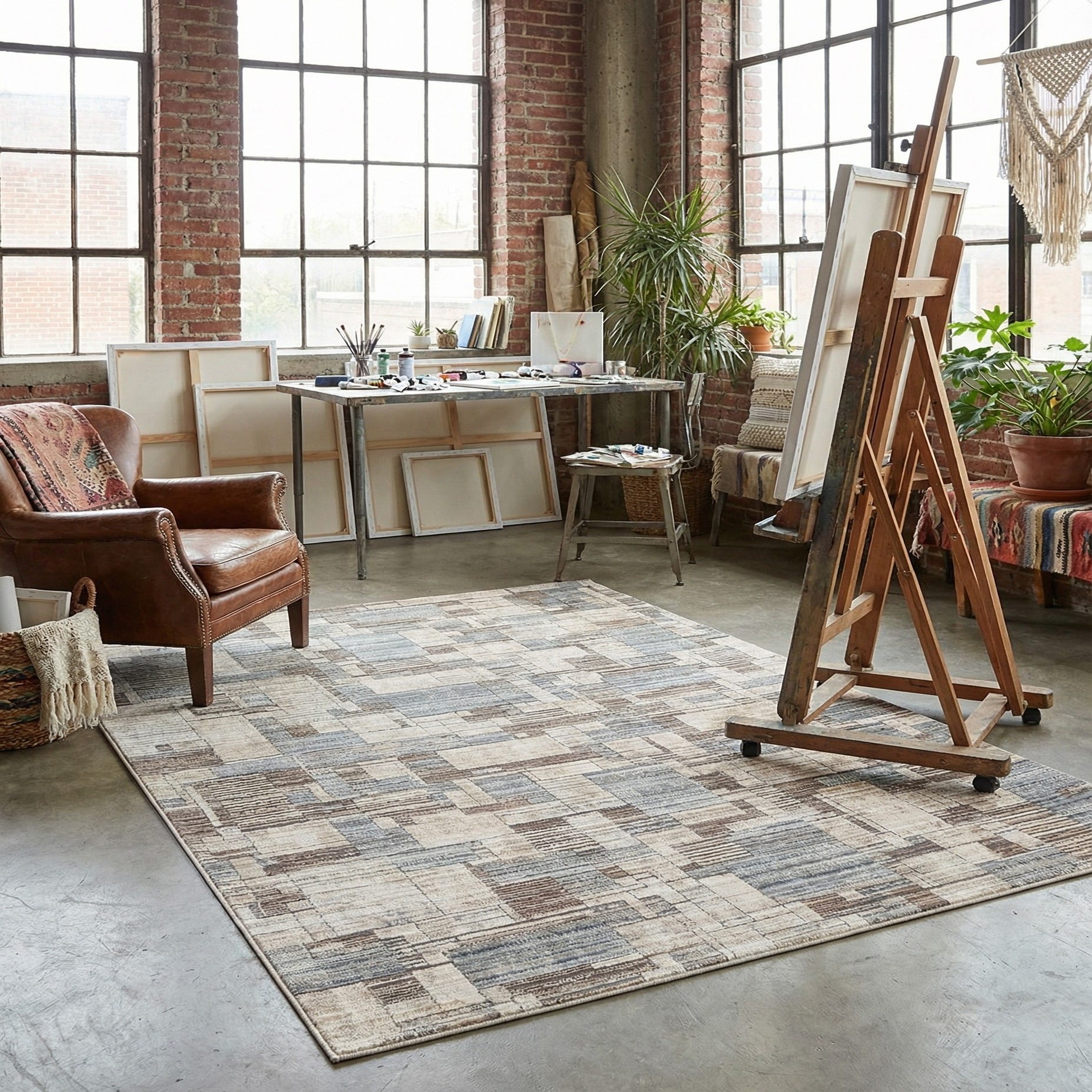Primary color is Echo Beige. Colors in this rug include: Echo Beige, Brown, Gray, Light Brown.