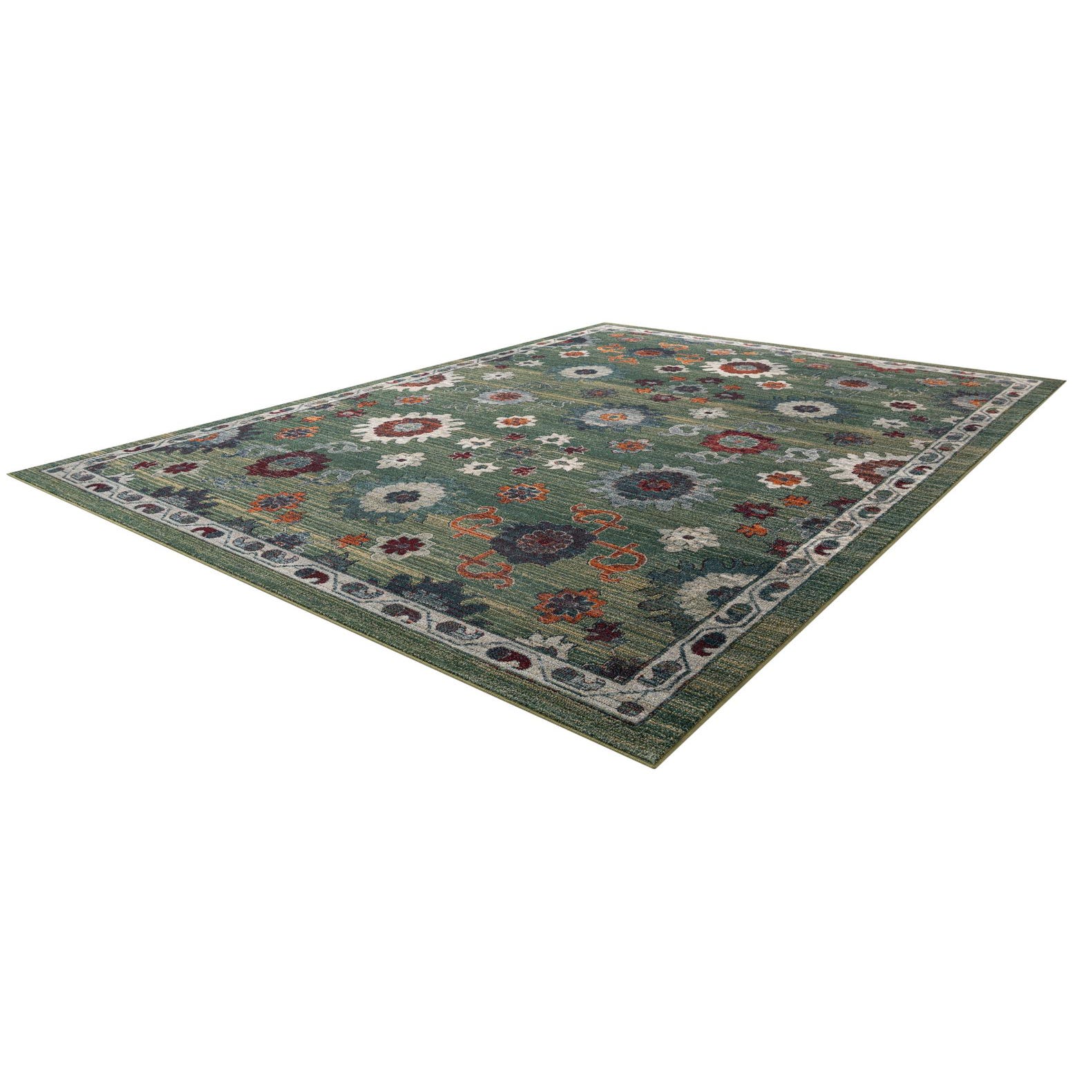Primary color is Fern Green. Colors in this rug include: Fern Green, Beige, Black, Blue, Green, Ivory, Light Blue, Light Green, Navy Blue, Orange, Peach, Plum Red, Red, Purple.