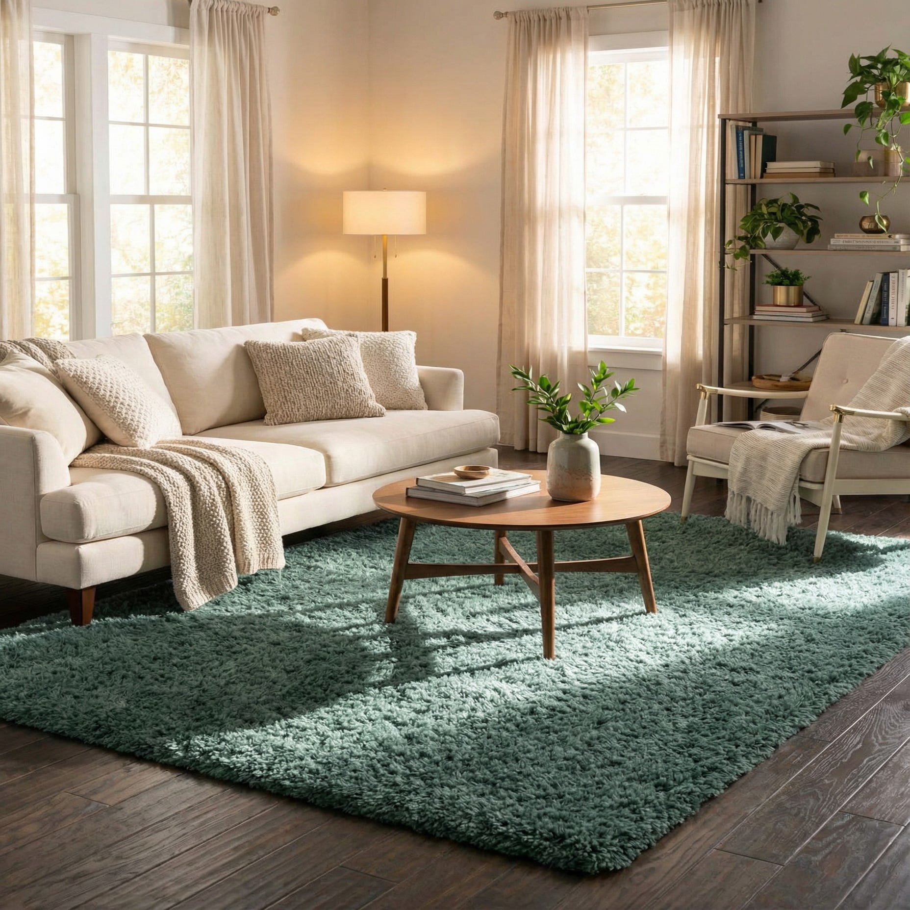 This simple, contemporary shag works well in modern, Scandinavian, or mid-century spaces where a cozy, single-color anchor is needed. Place it beneath a low-profile sofa to define a living area, alongside a bed to add warmth to the bedroom, or in a reading nook to create a soft landing spot. It pairs nicely with warm wood tones, leather or rattan accents, neutral linens, and botanical prints, and can be contrasted with brass or matte-black metal details for a balanced, inviting look.