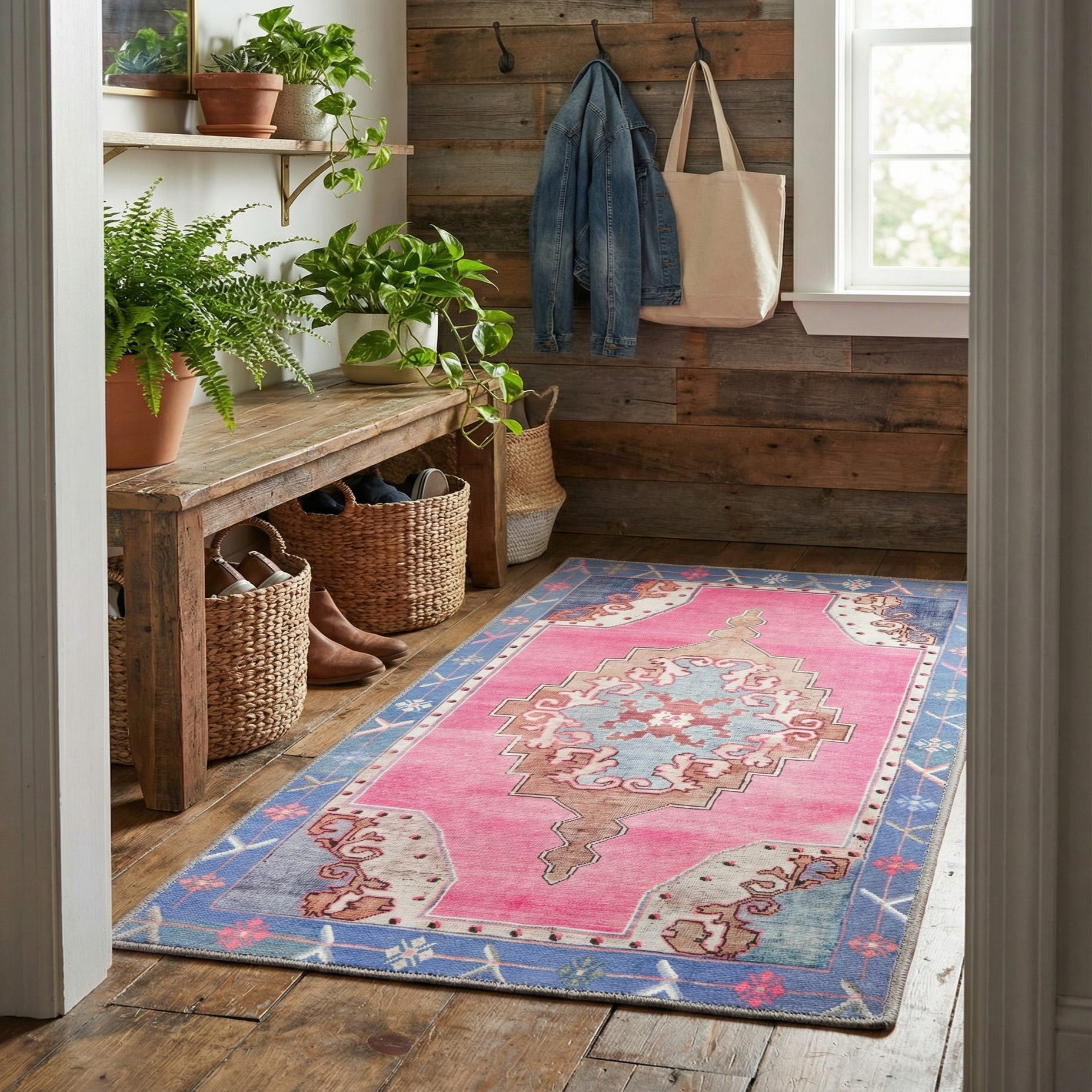 Place this runner in a hallway or narrow entry to introduce a bold pop of color, or layer it along the side of a bed to enliven a bedroom with modern or eclectic furnishings. It pairs well with neutral upholstery and light wood tones for contrast, and also complements mid-century and bohemian interiors when combined with brass accents, textured throws, or mixed-pattern pillows.
