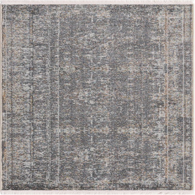 Primary color is Fume Gray. Colors in this rug include: Fume Gray, Brown, Gray, Ivory, Tan, Light Blue.