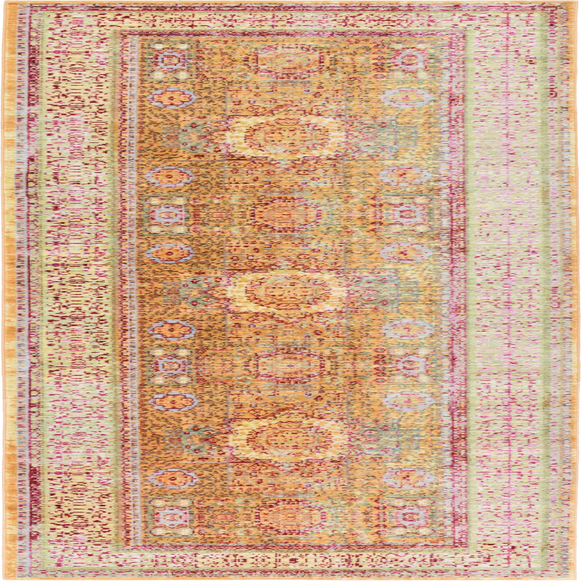 Primary color is Gold. Colors in this rug include: Gold, Burgundy, Ivory, Light Blue, Light Green, Red, Yellow.