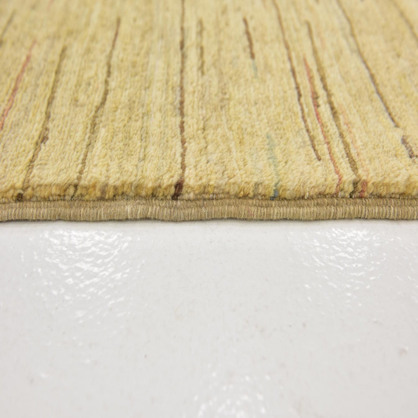 A 10 ft runner rug in shades of yellow and gold with subtle horizontal stripes, perfect for a hallway.