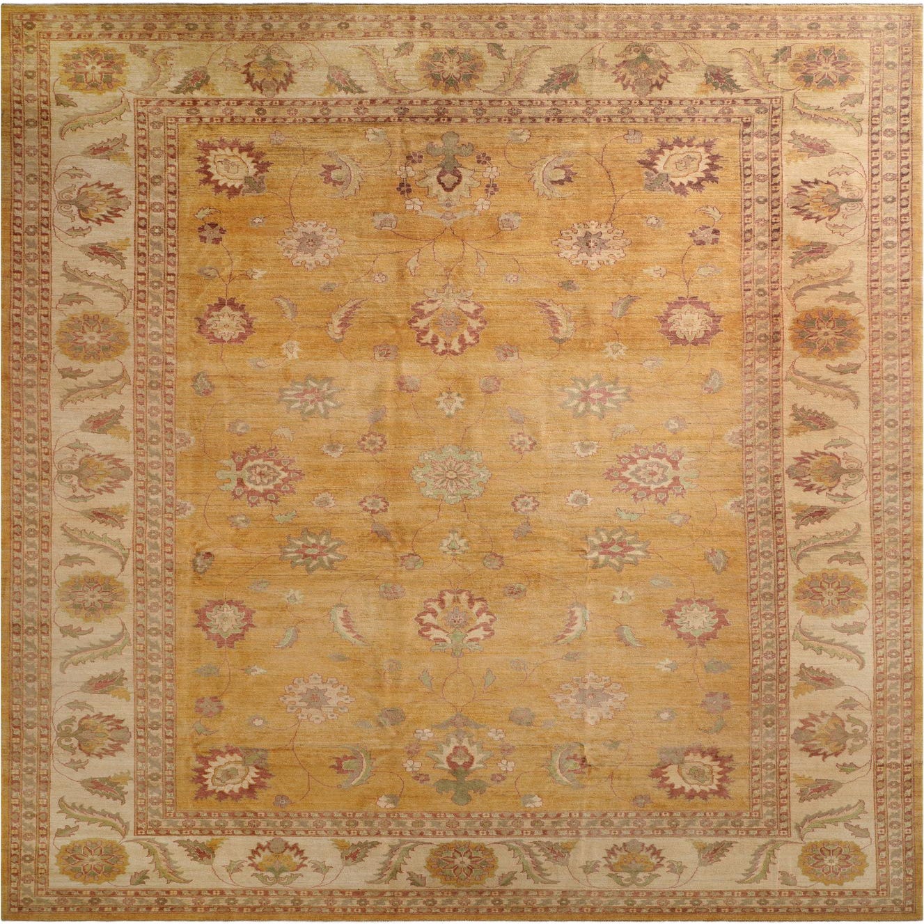 Primary color is Gold. Colors in this rug include: Gold, Beige, Brown, Cream, Green.
