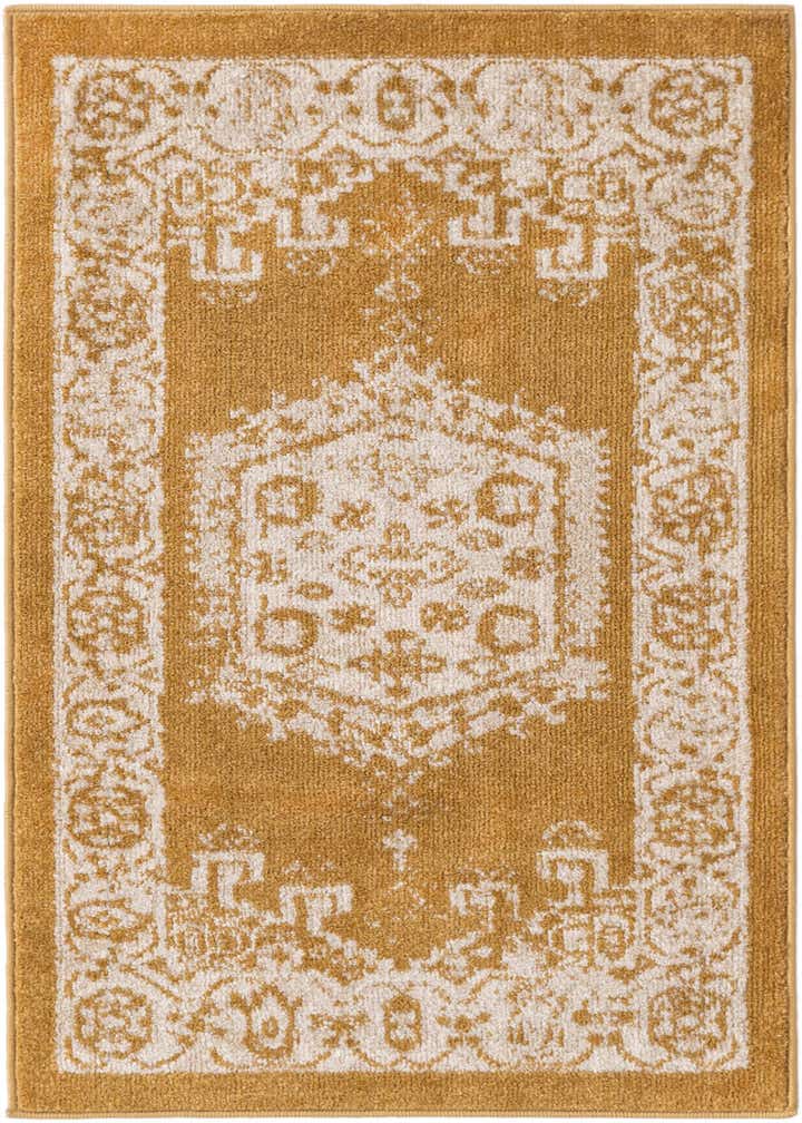 Primary color is Gold. Colors in this rug include: Gold, Ivory.