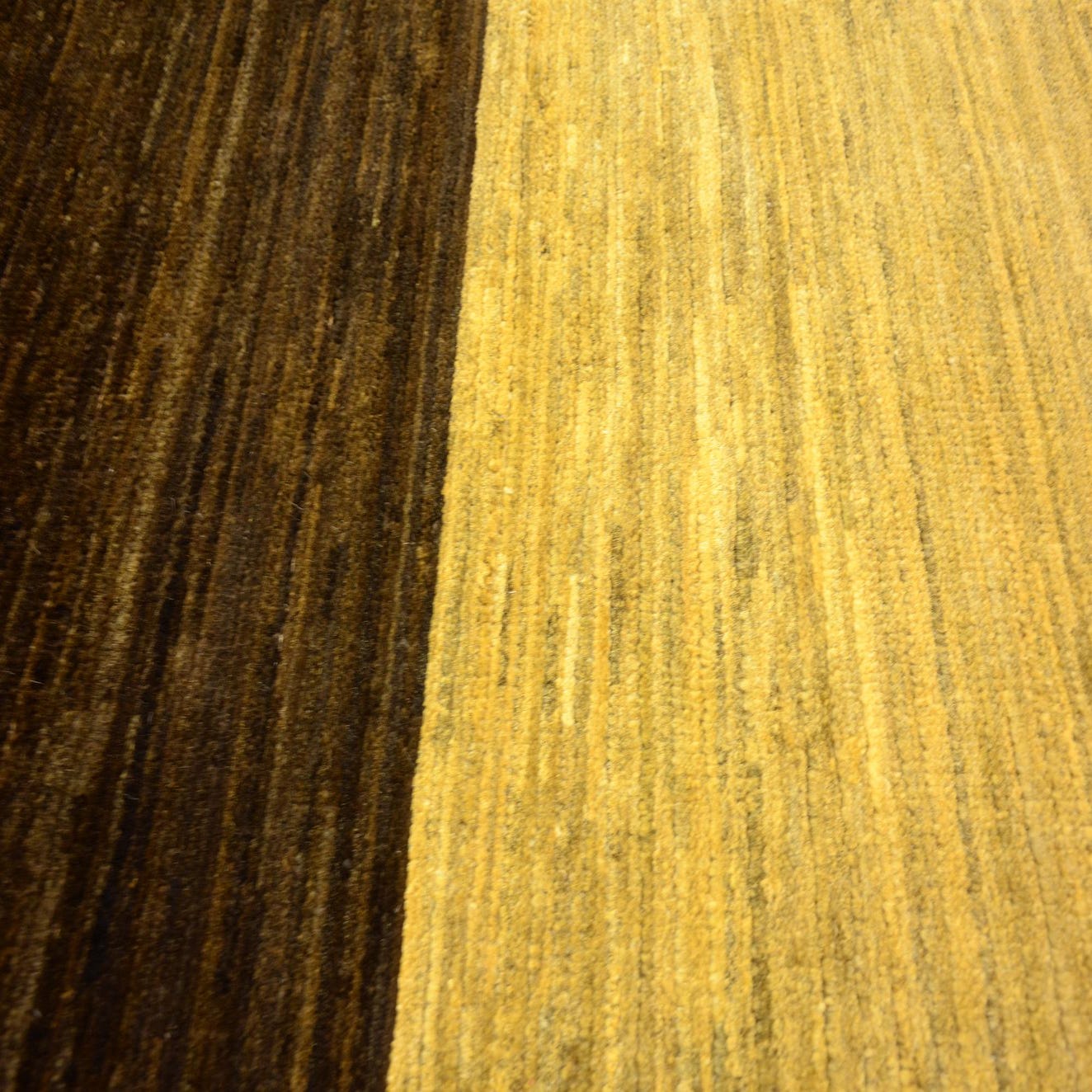 A 3x5 rectangular modern rug featuring broad horizontal stripes in varying shades of yellow and a prominent dark brown central stripe.