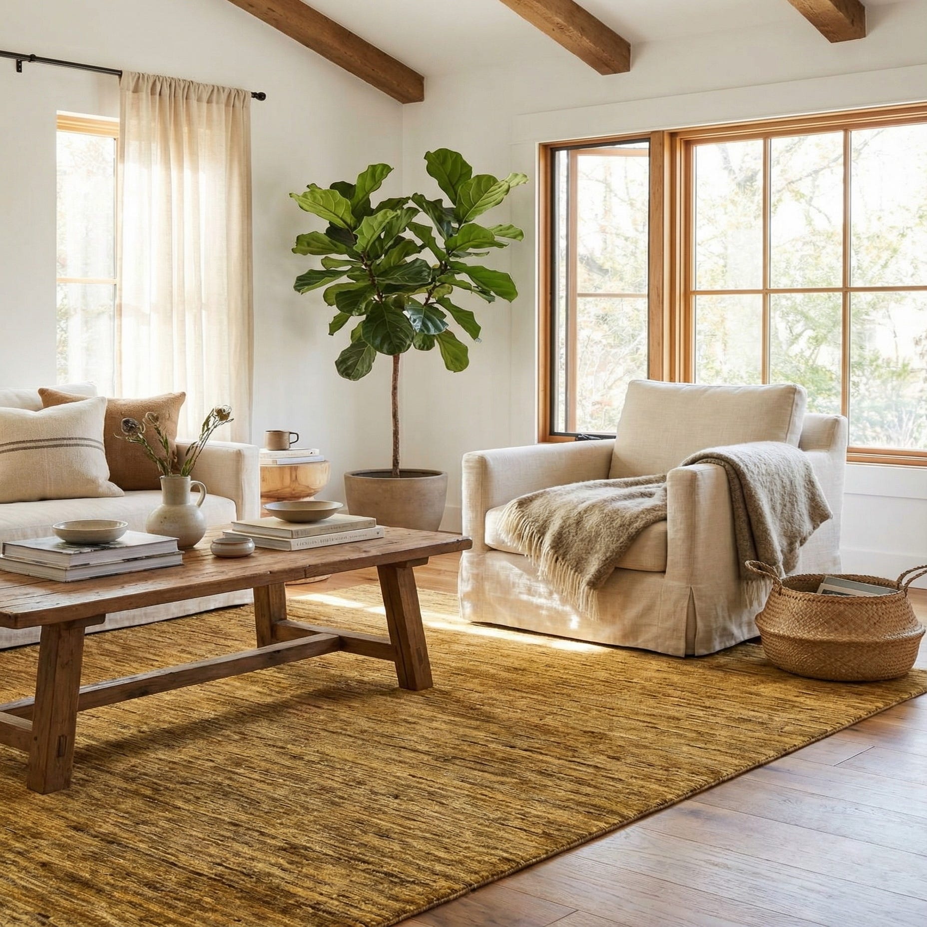 Primary color is Gold. Colors in this rug include: Gold, Brown.